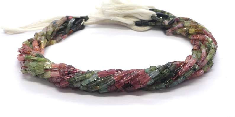 ลูกปัดทัวร์มาลีนหลากสีธรรมชาติ ทรงสี่เหลี่ยมผืนผ้า ผิวเรียบ