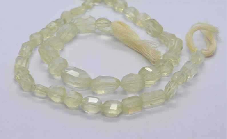 ลูกปัดมูนสโตนธรรมชาติจากแอฟริกาทรงเหลี่ยมขนาด 7-11 มม. สีเหลือง ลูกปัดพลอยมูนสโตนขัดเงา ขนาด 10 นิ้ว ทรงเหลี่ยม