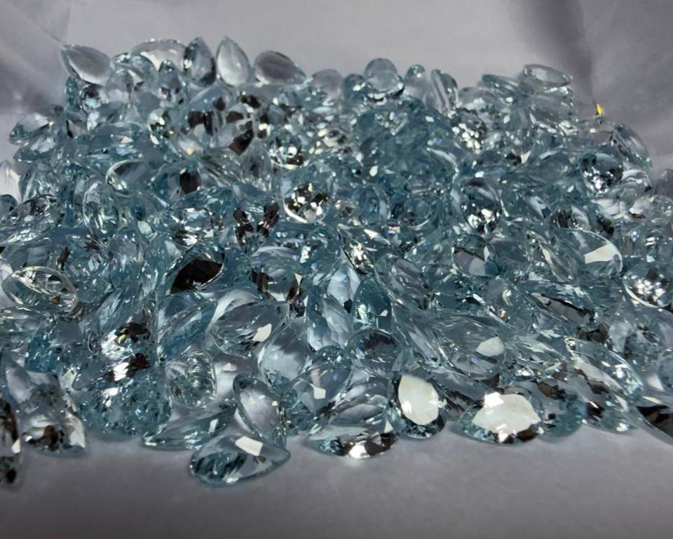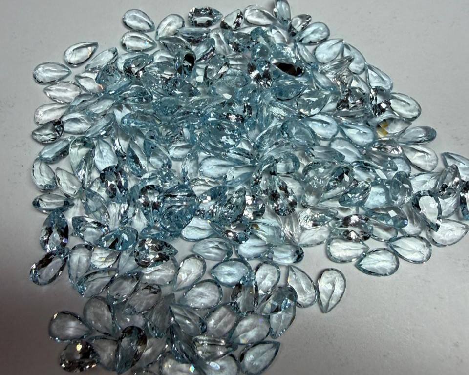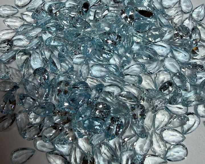 อะความารีนธรรมชาติทรงหยดน้ำเจียระไนแบบมรกต 8x5 มม. แบบคาโบชอง | พลอยอะความารีนสีน้ำเงินแบบหลวมสำหรับทำเครื่องประดับและขายส่ง
