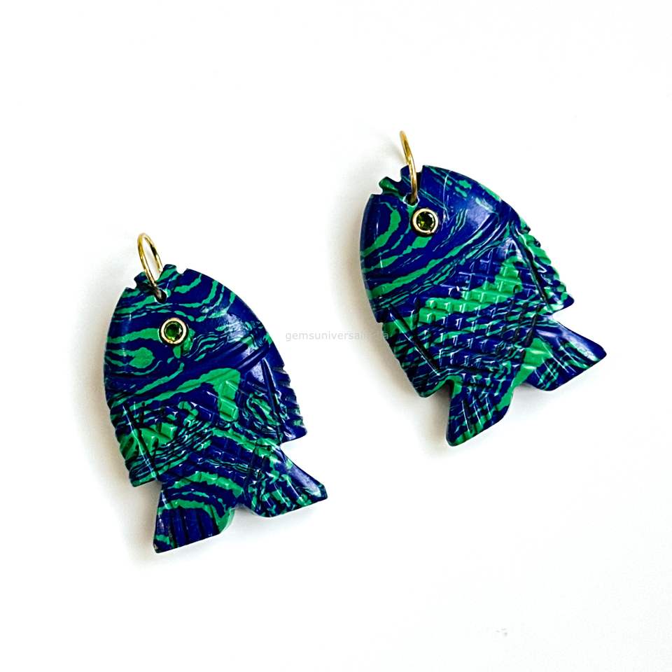 จี้ห้อยคอรูปปลา AAA Azurite Malachite