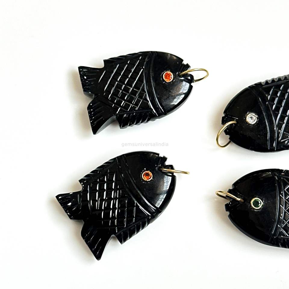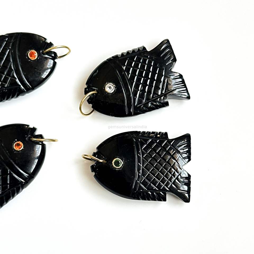Gemstone Name:Natural Black Onyx Fish Pendant Charms