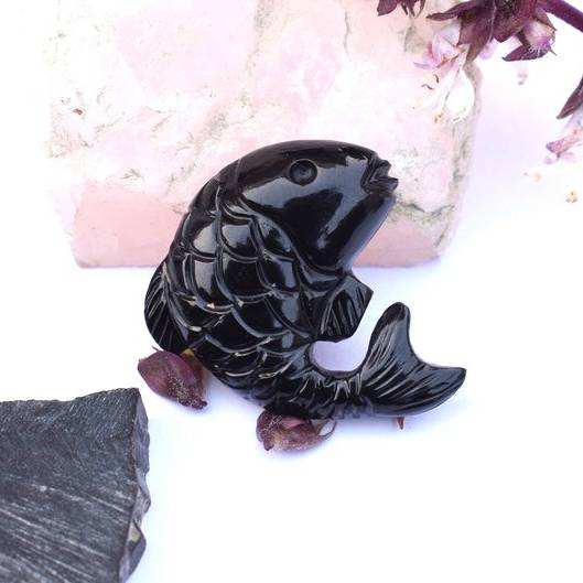 ชื่อผลิตภัณฑ์:ปลาอัญมณีแกะสลักสีดำนิล