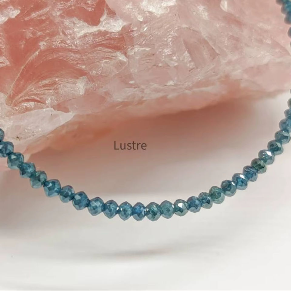 ลูกปัดเพชรบลูไดมอนด์ธรรมชาติทรงรอนเดลล์ เกรด AAA+ ความยาว 15 นิ้ว รับรองคุณภาพสำหรับทำเครื่องประดับ ขายส่ง - แบรนด์ Lustre