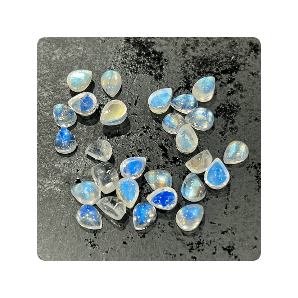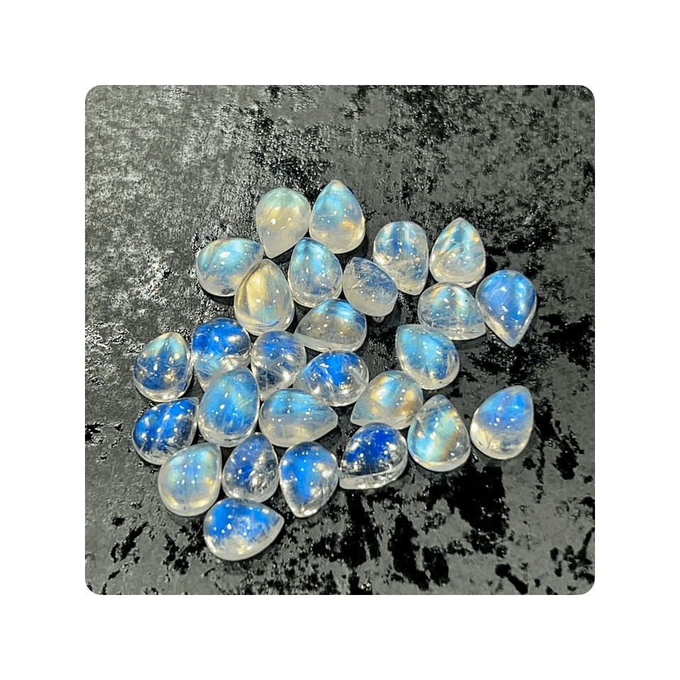 อัญมณีทรงหลังเบี้ยทรงลูกแพร์ฉูดฉาดสีรุ้งของอินเดียไฟสีฟ้าธรรมชาติขนาด6x8มม.