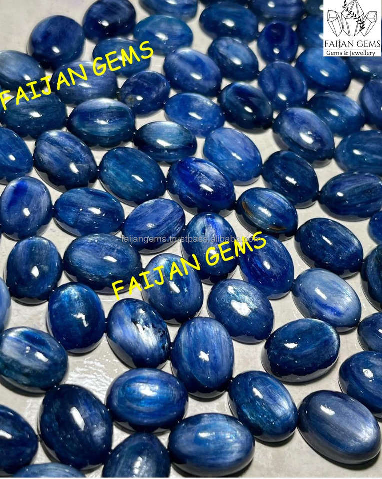 พลอยไคยาไนต์สีน้ำเงินธรรมชาติ AAA ขนาดปรับแต่งได้ ขัดเงา ทรงหลังเบี้ย เพิ่มความสดใสของสี รับรองโดยผู้ตรวจสอบอิสระ สำหรับทำเครื่องประดับ