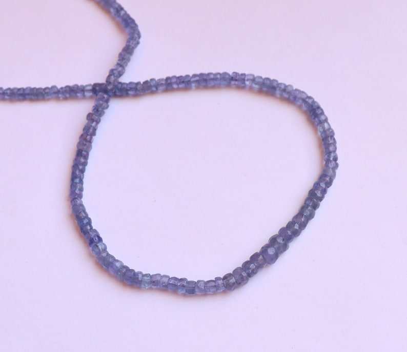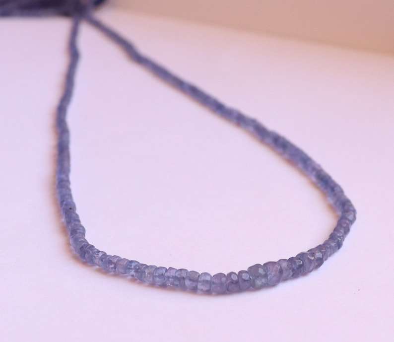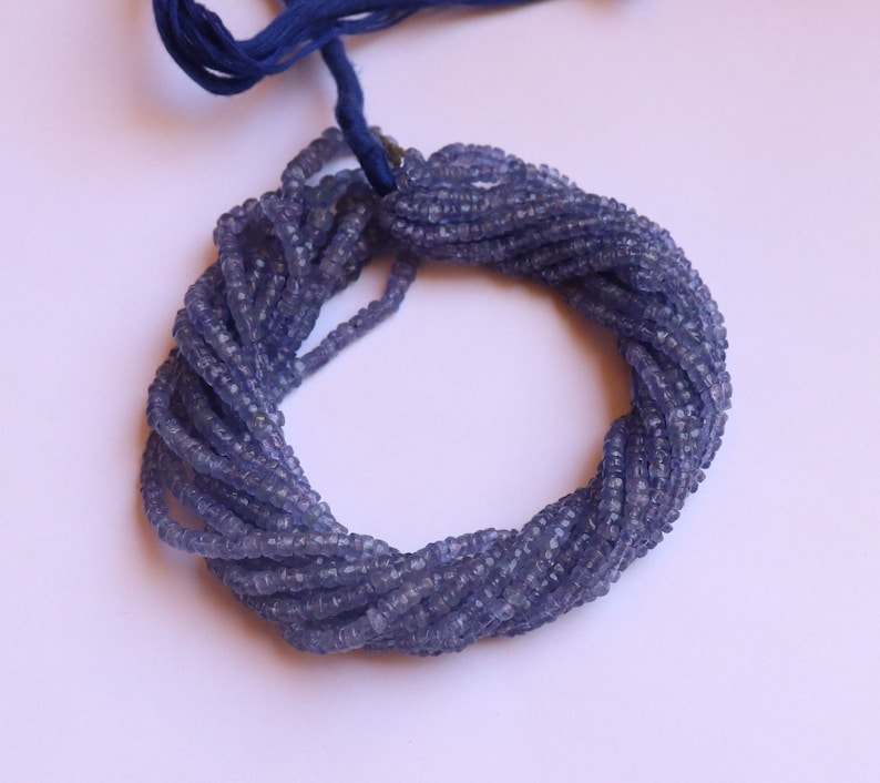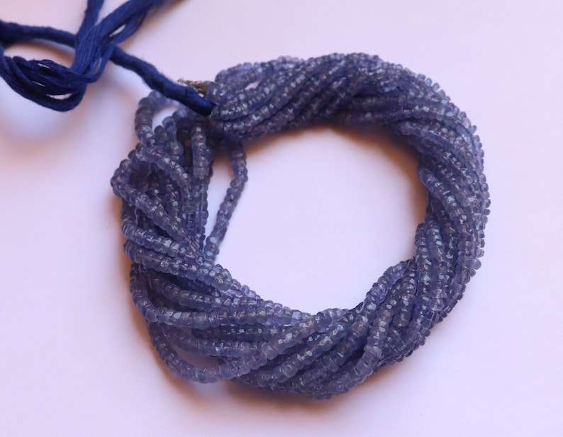 ลูกปัดแทนซาไนต์สีน้ำเงินธรรมชาติทรงรอนเดลล์ขนาด 3-4 มม. ลูกปัดพลอยแทนซาไนต์ทรงรอนเดลล์ขนาด 18 นิ้ว สำหรับทำเครื่องประดับขายส่ง