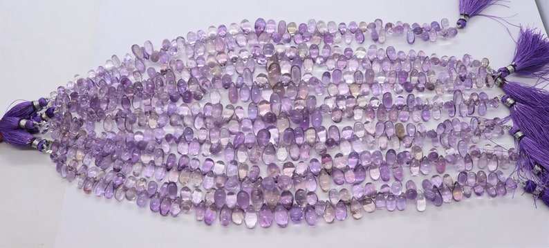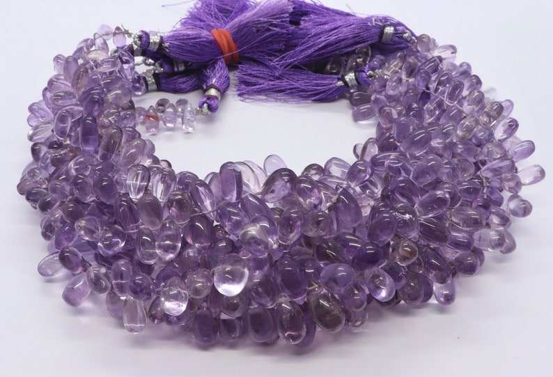 ลูกปัดอะเมทิสต์ธรรมชาติจากบราซิล รูปทรงหยดน้ำ เรียบเนียน ขนาด 5x8 ถึง 6x11 มม. ลูกปัดอะเมทิสต์ทรงหยดน้ำสำหรับทำเครื่องประดับ ความยาว 8 นิ้ว