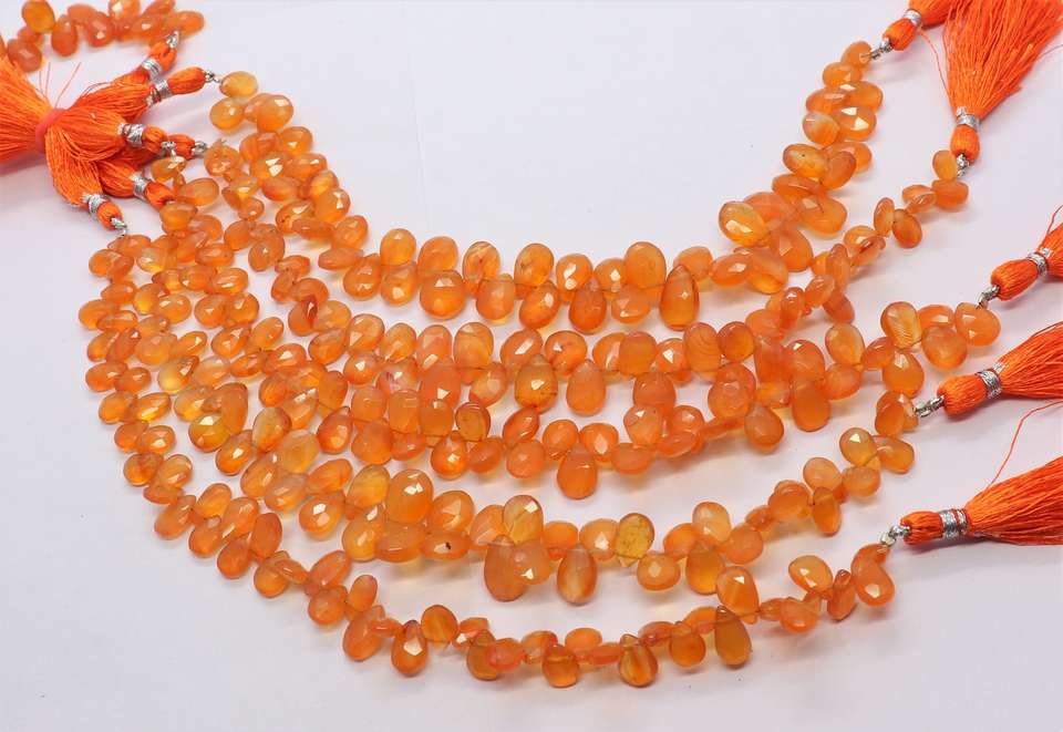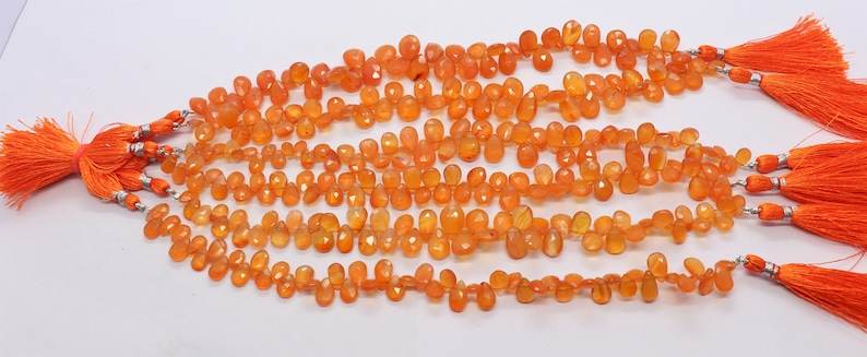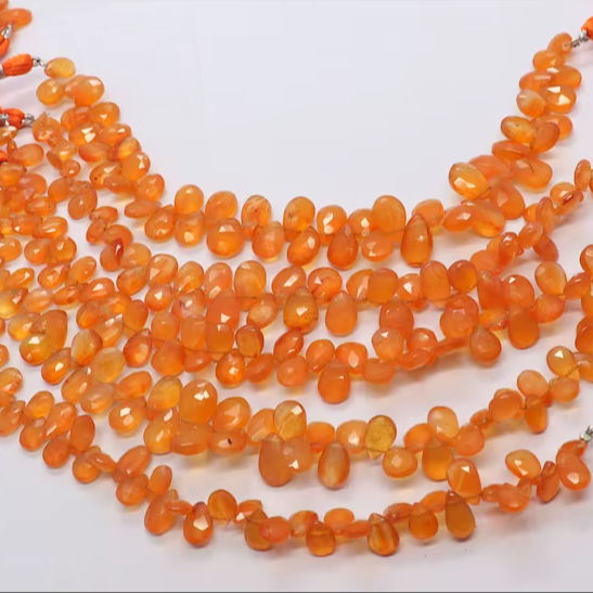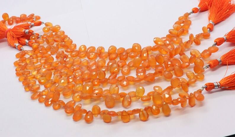 ลูกปัดคาร์เนเลียนทรงลูกแพร์เจียระไนธรรมชาติ AAA ขนาด 6x8 ถึง 7x10 มม. ลูกปัดคาร์เนเลียนทรงลูกแพร์เจียระไนขนาด 8 นิ้ว ร้อยเป็นเส้น