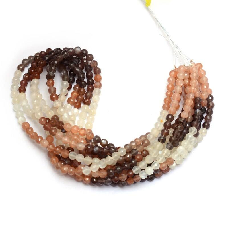 AAA ลูกปัดหินมูนสโตนทรงกลมขนาด4มม.-5มม. สีน้ำตาลมูนสโตนสังเคราะห์อัญมณีหลวมสำหรับทำเครื่องประดับ