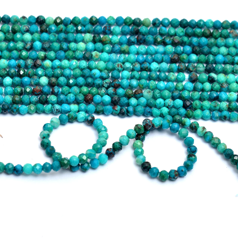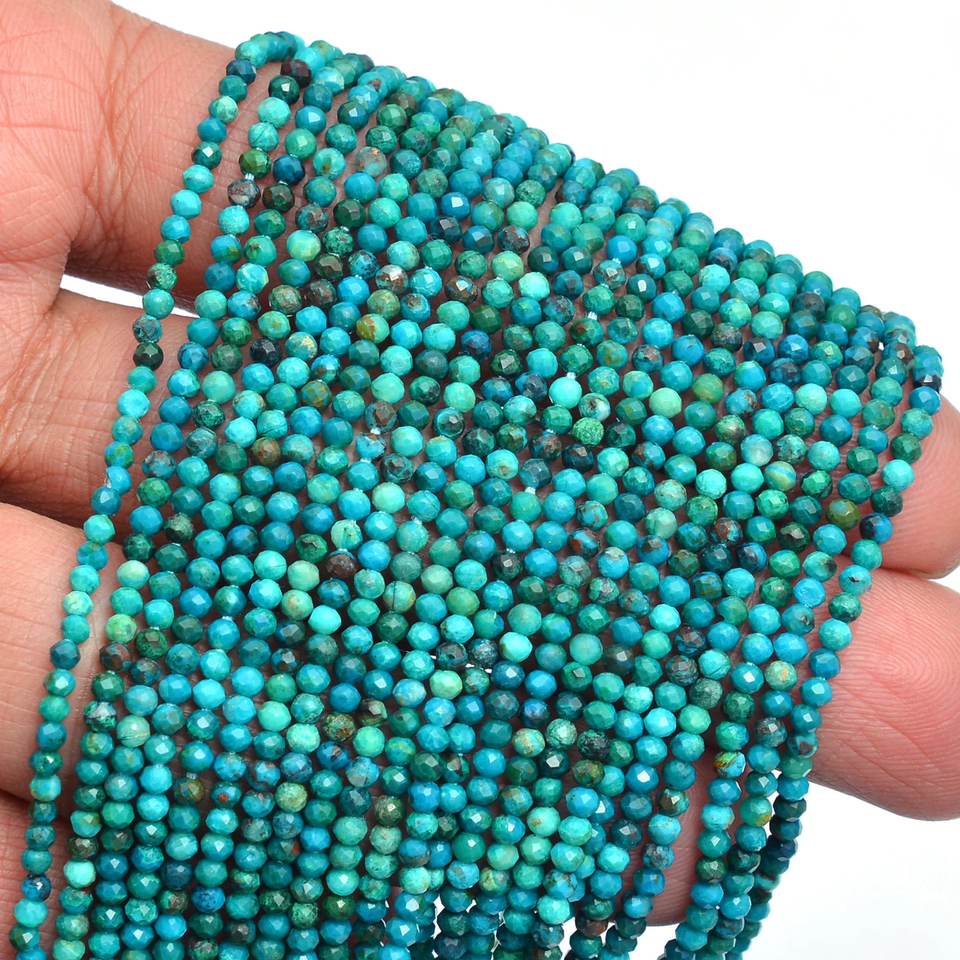 AAA + พลอยคริสโซโคลลาธรรมชาติขนาด2มม.-3มม. ลูกปัดกลมเหลี่ยมเพชรพลอยไมโครคริสโซโคลลากึ่งมีค่าลูกปัดเหลี่ยมเพชรพลอยหลวม