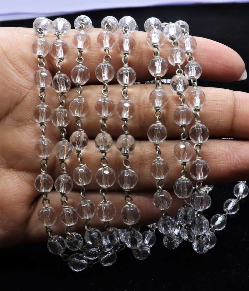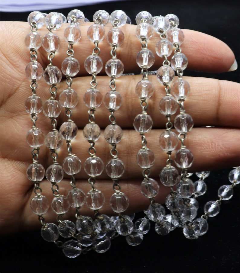 ลูกปัดคริสตัลทรงกลมเจียระไนธรรมชาติ AAA ขนาด 6 มม. ลูกปัดคริสตัลถักมือ 108 เม็ด ลูกปัดมาลาคริสตัลถักมือ พลอยคริสตัล