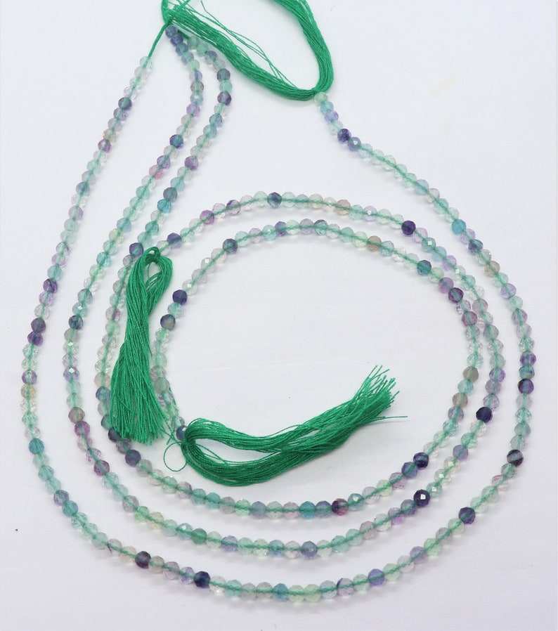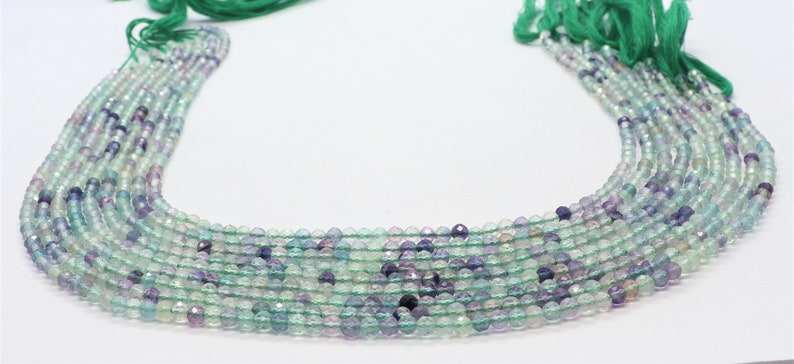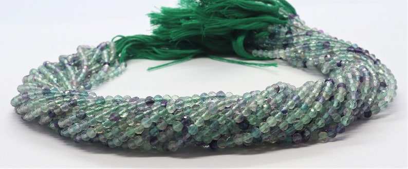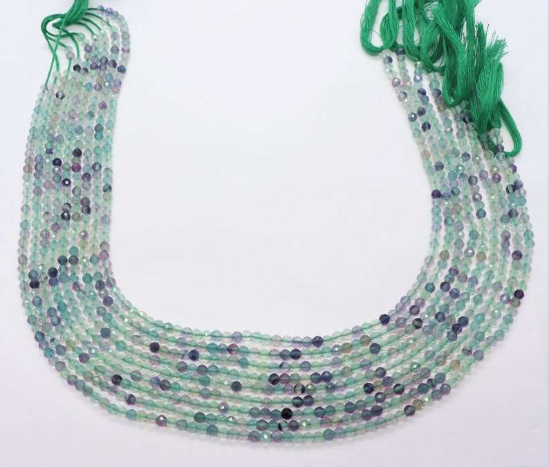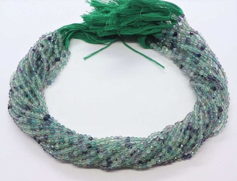 ลูกปัดฟลูออไรต์ธรรมชาติทรงเหลี่ยมขนาด 3 มม. ลูกปัดพลอยฟลูออไรต์ขนาด 13 นิ้ว สำหรับทำเครื่องประดับ