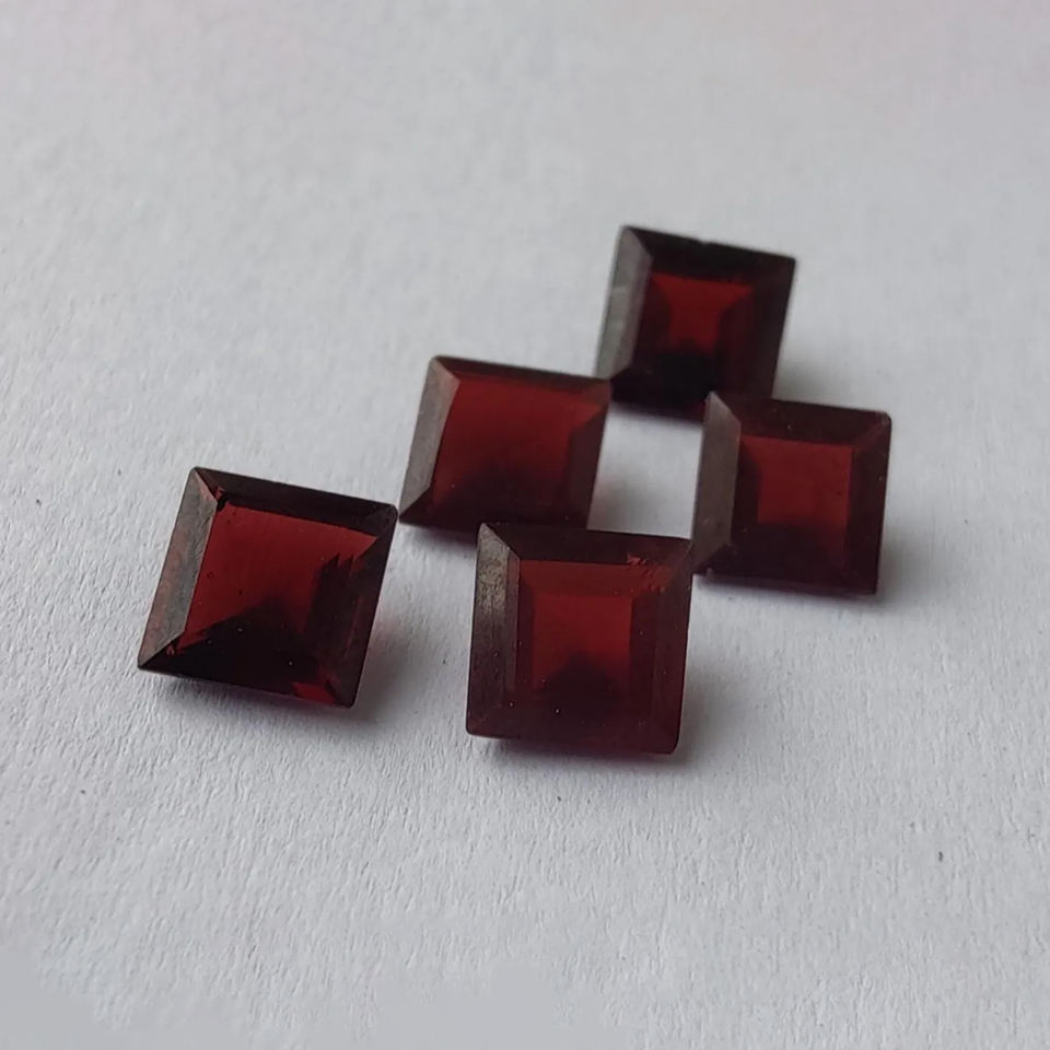 พลอยโกเมนธรรมชาติทรงเหลี่ยมเจียระไนเกรด AAA+ | หินหลวมสำหรับทำเครื่องประดับ มีทุกขนาด