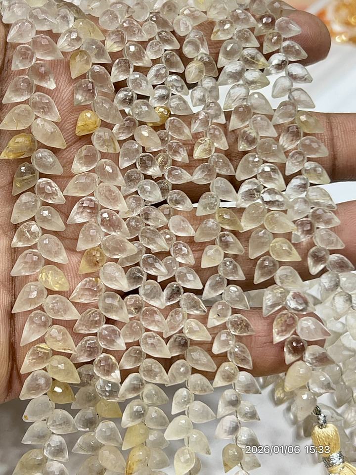 ควอตซ์รูไทล์สีทองธรรมชาติ AAA ทรงหยดน้ำเจียระไนแบบแฟนซี ขนาดประมาณ 6x9 มม. ความยาว 8 นิ้ว