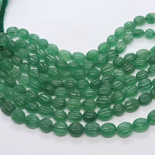 ลูกปัดแกะสลักทรงรีสีเขียวธรรมชาติจากสตรอว์เบอร์รี