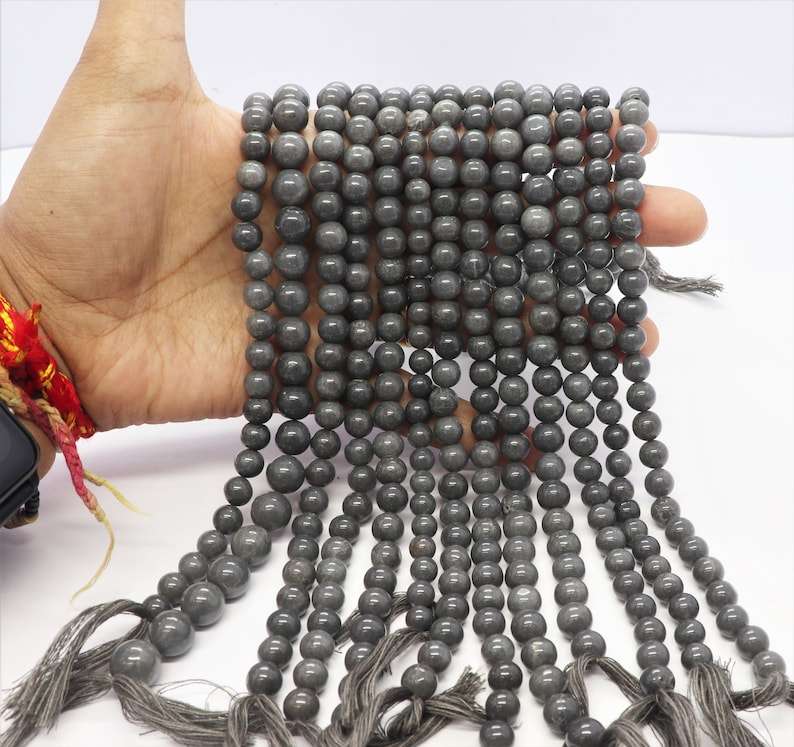 ชื่อหรือคำ:ลูกปัดหินมูนสโตนสีเทา ทรงกลมผิวเรียบ