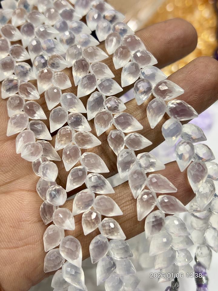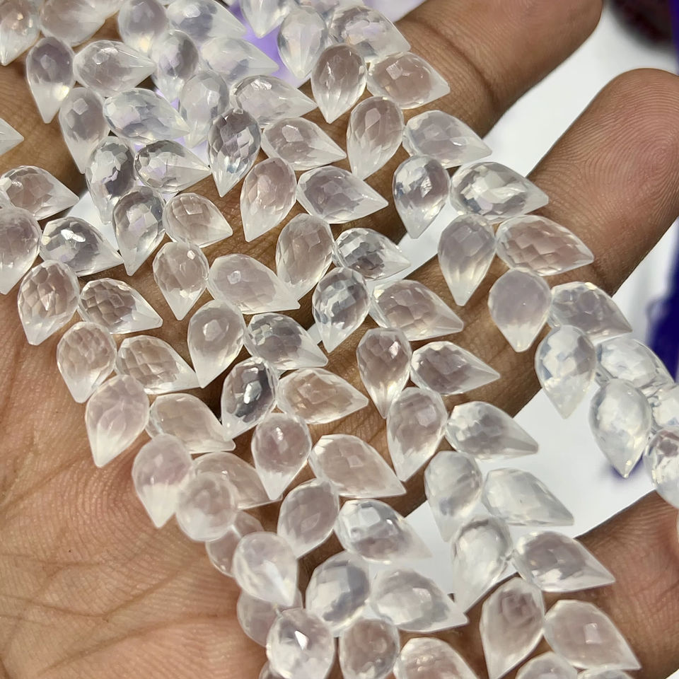 หินควอตซ์ธรรมชาติทรงหยดน้ำเจียระไนแบบแฟนซี ขนาดประมาณ 6x9 มม. ความยาว 8 นิ้ว