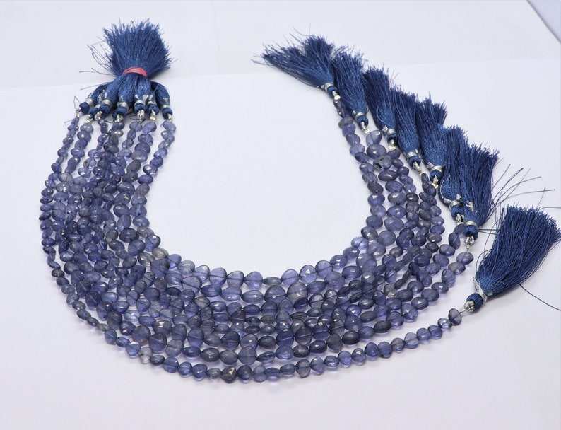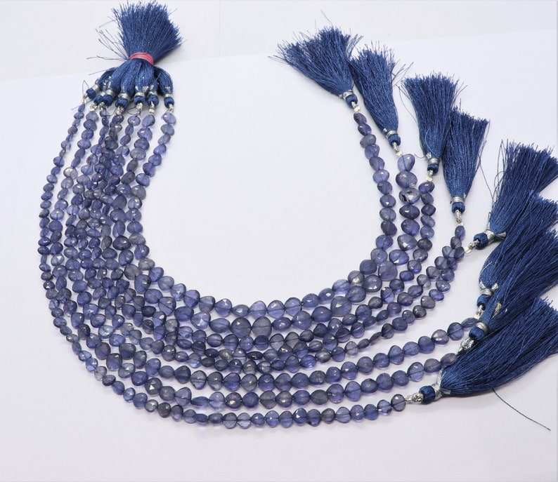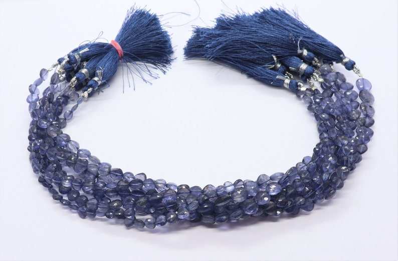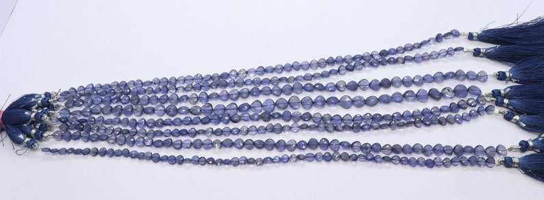 ลูกปัดไอโอไลต์ทรงหัวใจเจียระไนแบบธรรมชาติ AAA ขนาด 5-6 มม. ลูกปัดพลอยไอโอไลต์ 10 นิ้ว เจาะรูตรง สำหรับทำเครื่องประดับ