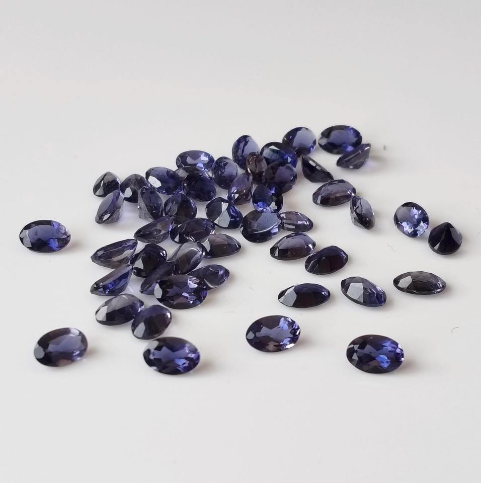 พลอยไอโอไลต์ธรรมชาติ AAA สีม่วงน้ำเงินสดใส รูปไข่เจียระไน สำหรับทำเครื่องประดับ ผู้จัดจำหน่ายพลอยที่เชื่อถือได้