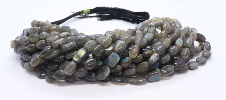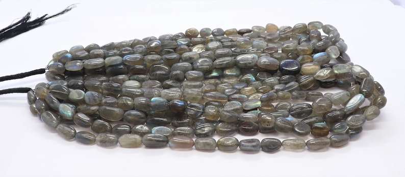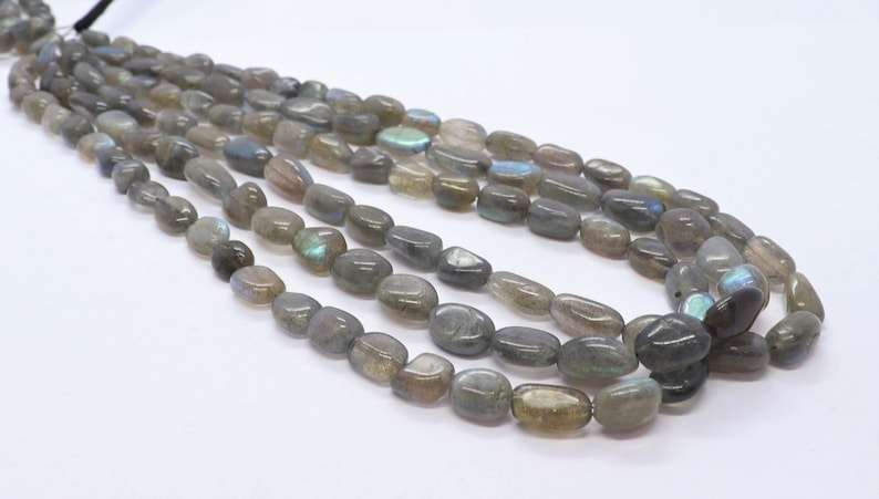 ลูกปัดหินลาบราโดไรต์ธรรมชาติ ทรงหยาบไม่สม่ำเสมอ