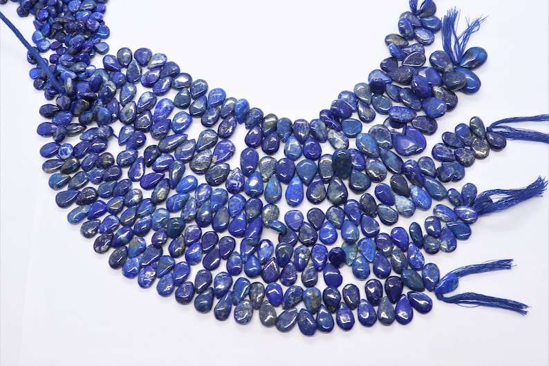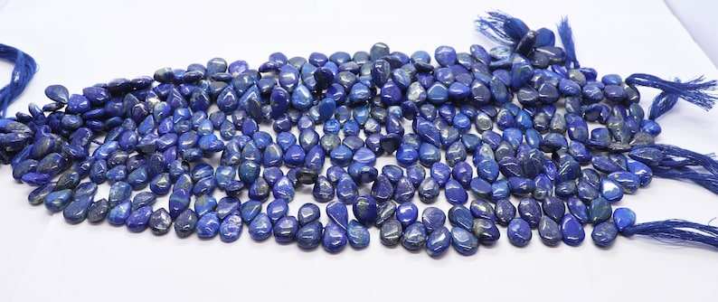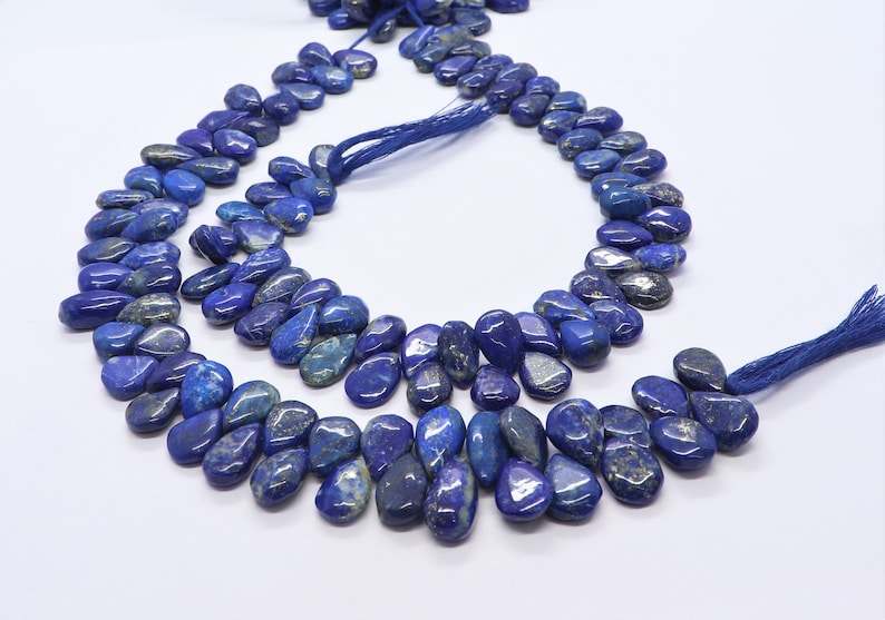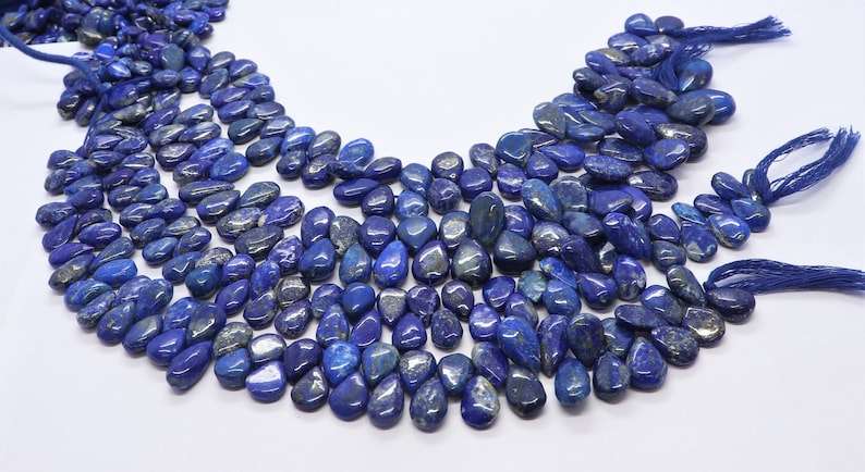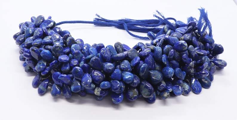 ลูกปัดลาพิส ลาซูลีทรงลูกแพร์เรียบธรรมชาติ AAA ขนาด 7x12 มม. ลูกปัดพลอยลาพิส ลาซูลี ความยาว 10 นิ้ว สำหรับทำเครื่องประดับ