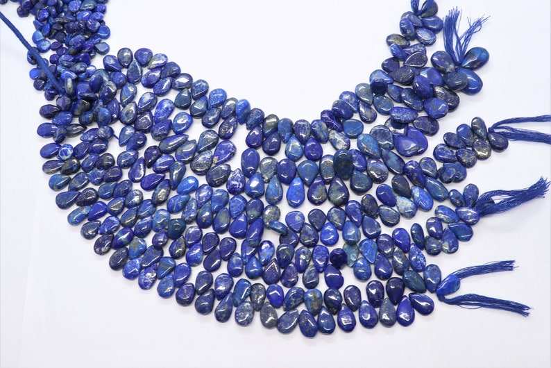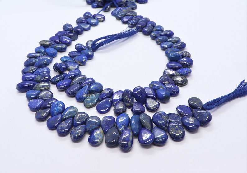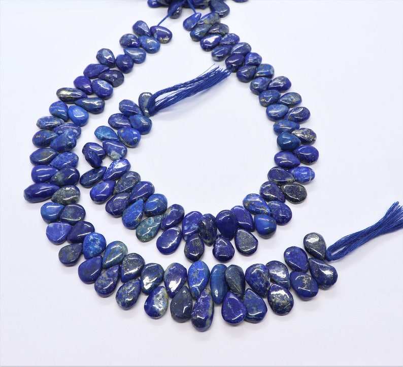 ลูกปัดลาพิส ลาซูลีธรรมชาติทรงลูกแพร์เรียบขนาด 7x12 มม. ลูกปัดพลอยลาพิสแบบเรียบ 10 นิ้ว ลูกปัดลาพิส ลาซูลีทรงลูกแพร์สำหรับทำเครื่องประดับ