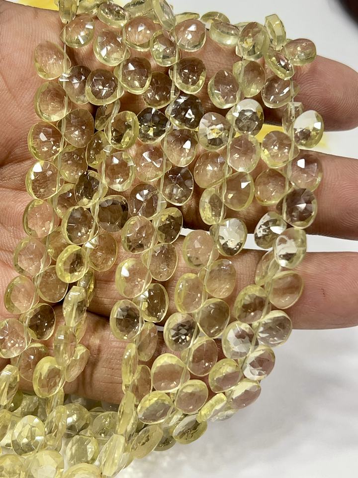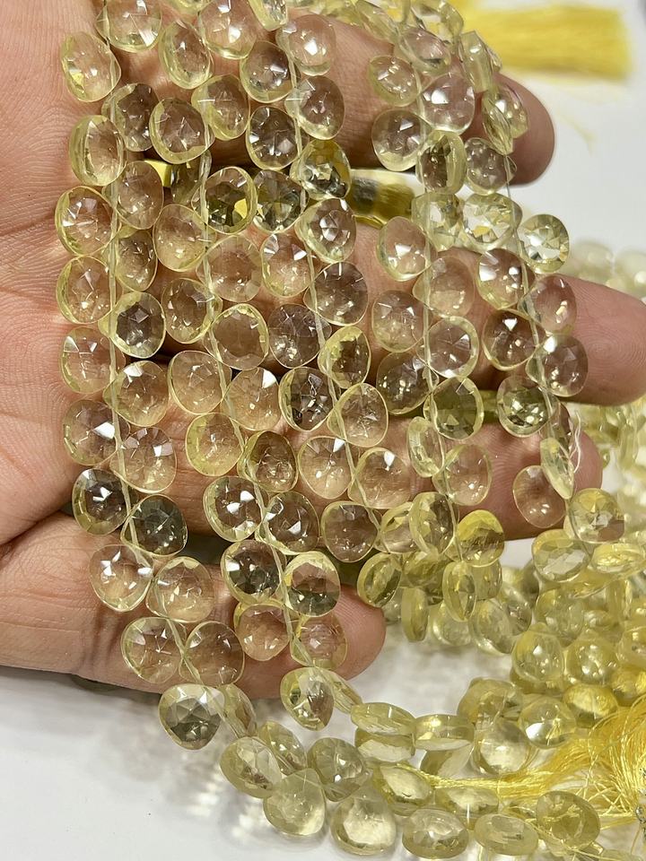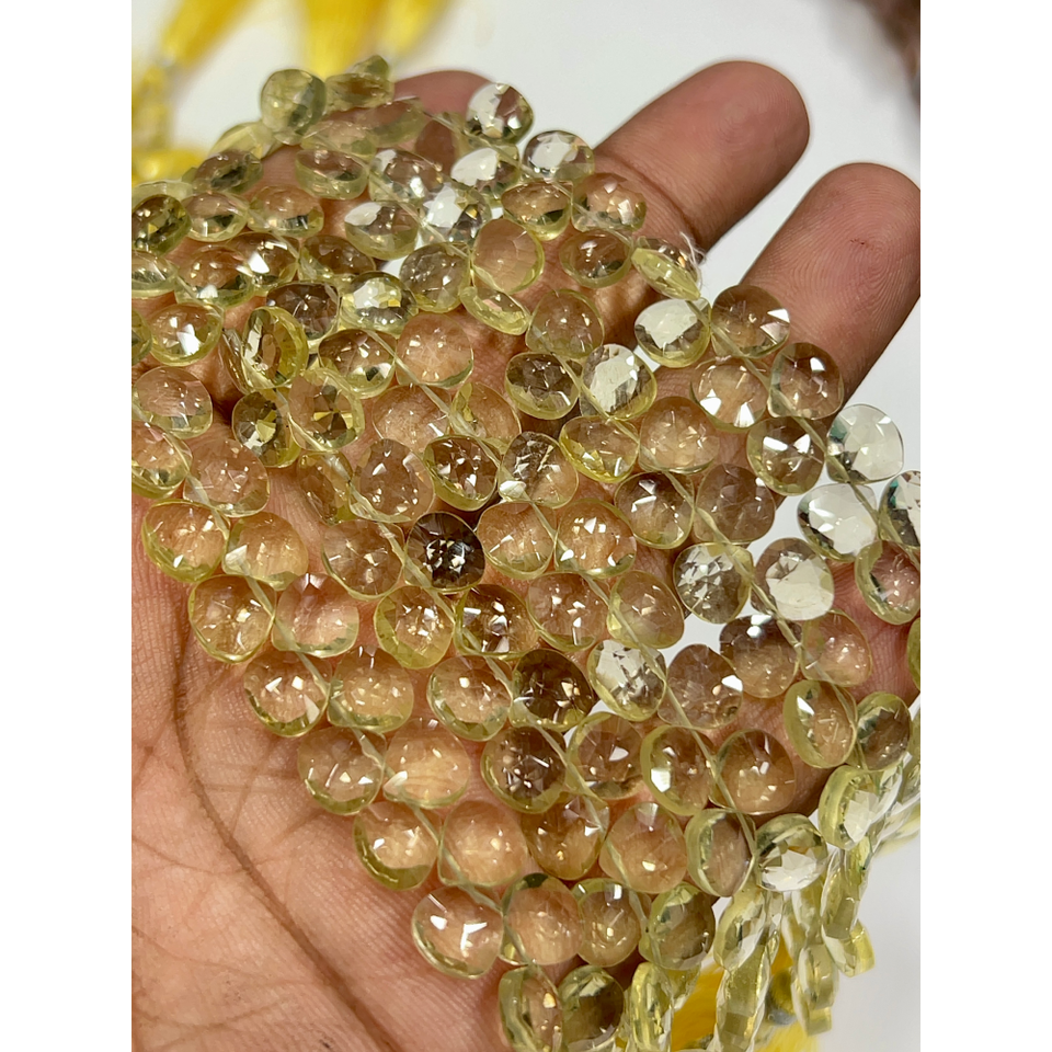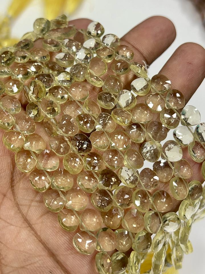 ลูกปัดควอตซ์เลมอนธรรมชาติทรงหัวใจเจียระไน ขนาดประมาณ 6-7 มม. สายไฟยาว 8 นิ้ว ได้รับการรับรองมาตรฐาน AIGS Alif