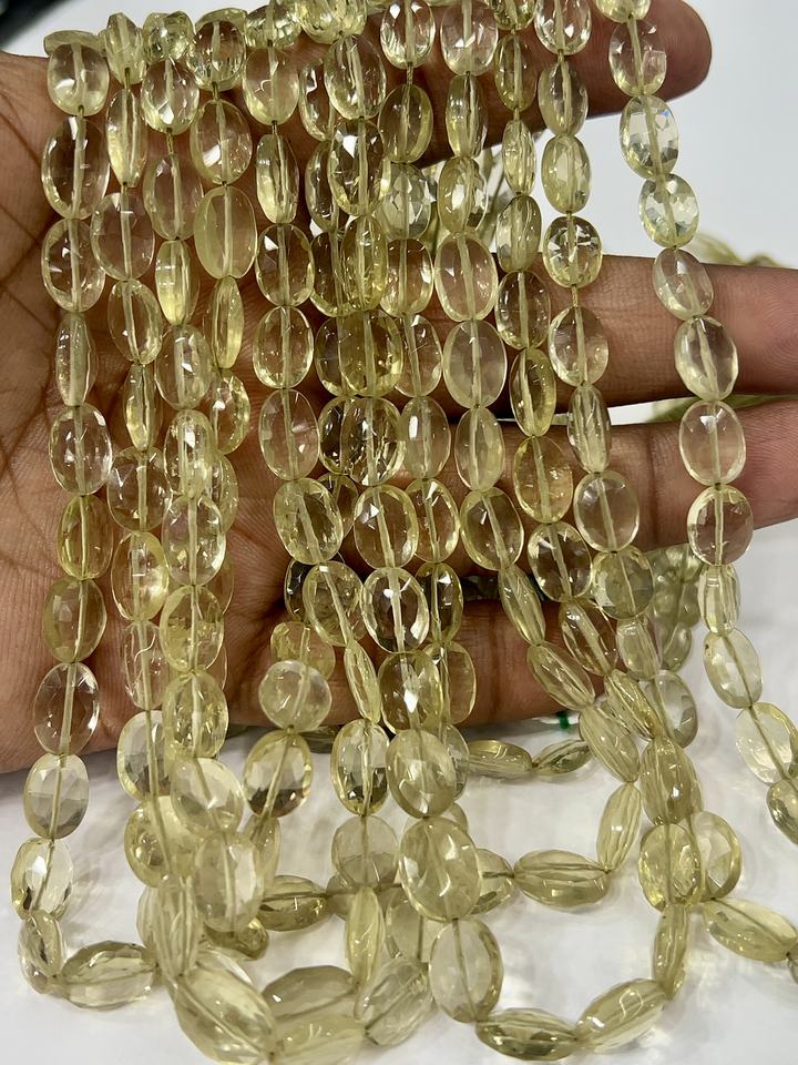 ลูกปัดควอทซ์ทรงไข่เกรด AAA เลมอนธรรมชาติขนาด14นิ้ว6x8-9x13mm หรูหราทันสมัยสำหรับการทำเครื่องประดับ
