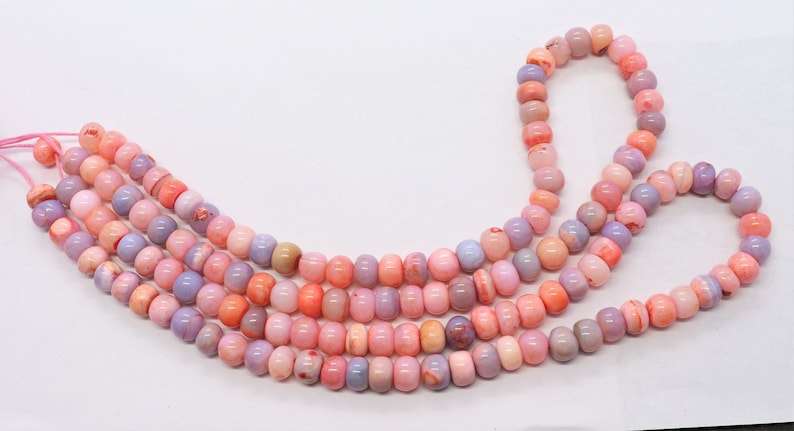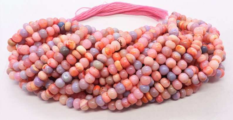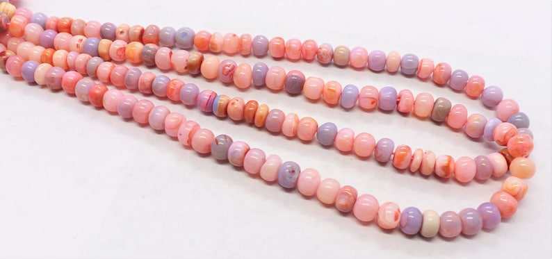 ลูกปัดโอปอลธรรมชาติหลากสีทรงรอนเดลล์ขนาด 6-6.5 มม. ลูกปัดโอปอลทรงรอนเดลล์ 16 นิ้ว สร้อยคอลูกปัดโอปอลเรียบ