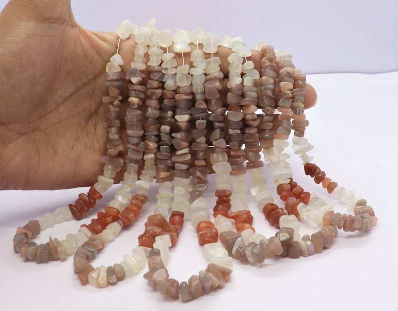 ลูกปัดมูนสโตนธรรมชาติ AAA รูปทรงไม่สม่ำเสมอ ขนาด 6 ถึง 6.5 มม. ลูกปัดมูนสโตนขัดเงา ลูกปัดมูนสโตนดิบ