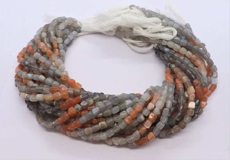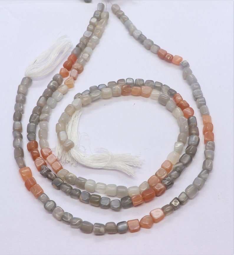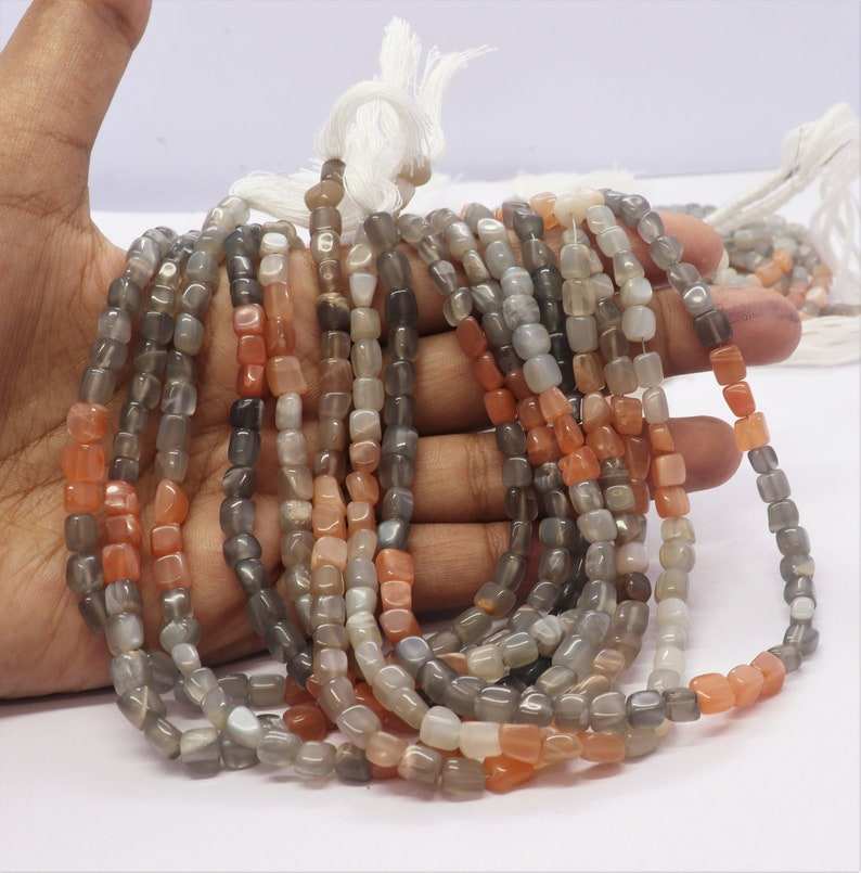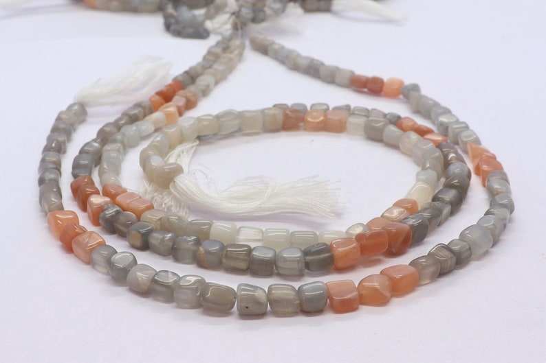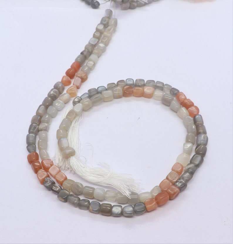 ลูกปัดมูนสโตนธรรมชาติทรงลูกบาศก์เรียบและไม่เรียบ ขนาด 5-5.5 มม. ลูกปัดมูนสโตนทรงสี่เหลี่ยมขนาด 13 นิ้ว
