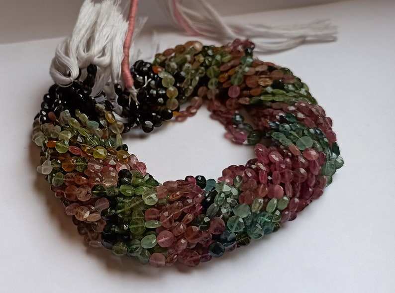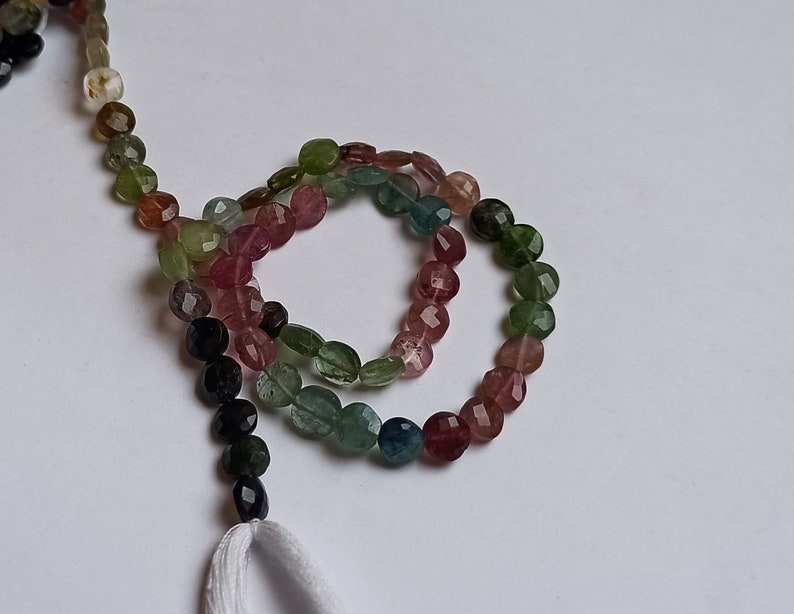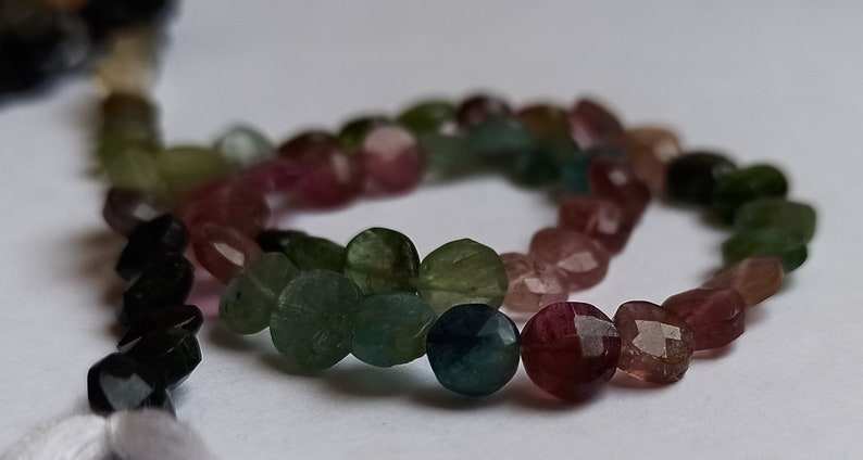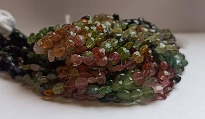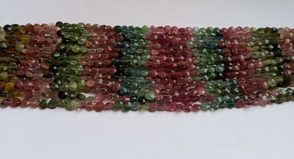 ลูกปัดหินทัวร์มาลีนหลากสีธรรมชาติทรงเหรียญเจียระไน