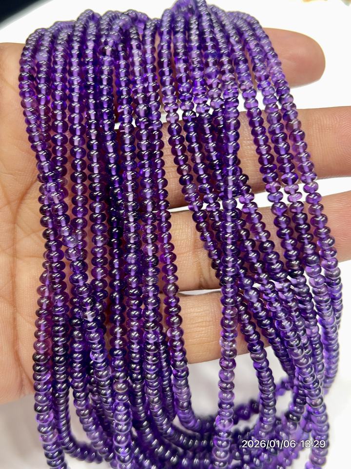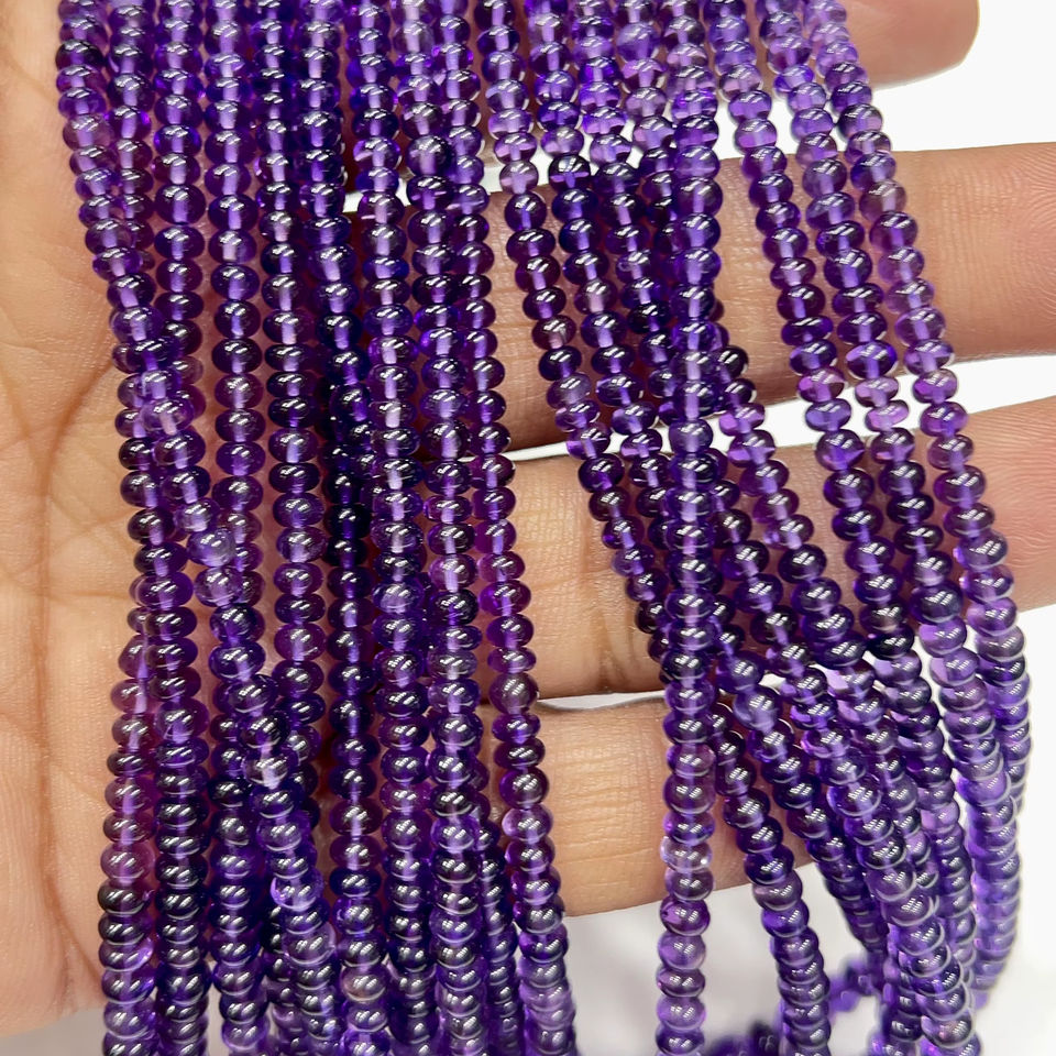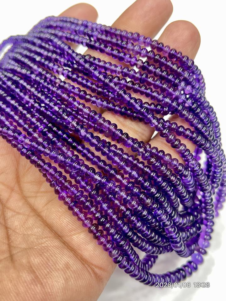 ลูกปัดอะเมทิสต์สีม่วงธรรมชาติ AAA ทรงกลมเรียบ ขนาดประมาณ 4-5 มม. ความยาว 17 นิ้ว
