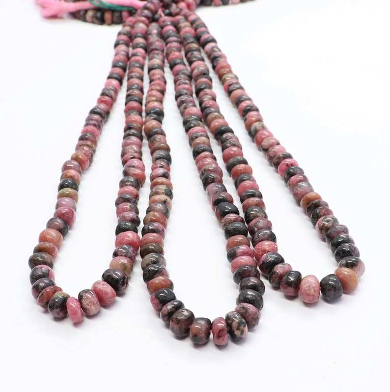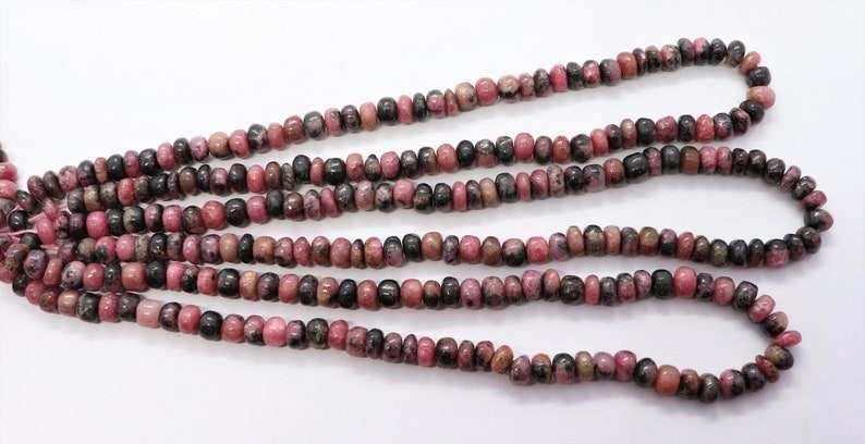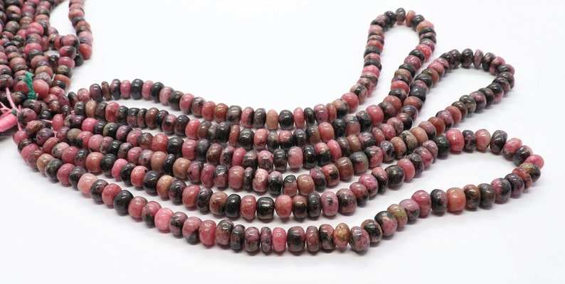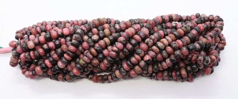 ลูกปัดโรโดโครไซต์ธรรมชาติ ทรงรอนเดลเรียบ