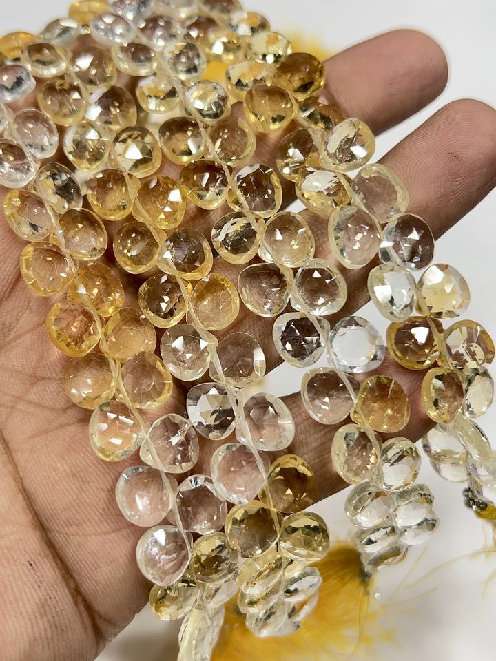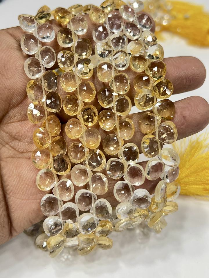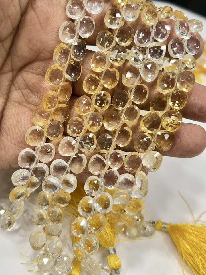 ลูกปัดควอตซ์ซิทรินธรรมชาติทรงหัวใจเหลี่ยมเพชรพลอย ขนาดประมาณ 6-7 มม. เส้นใยขนาด 8 นิ้ว