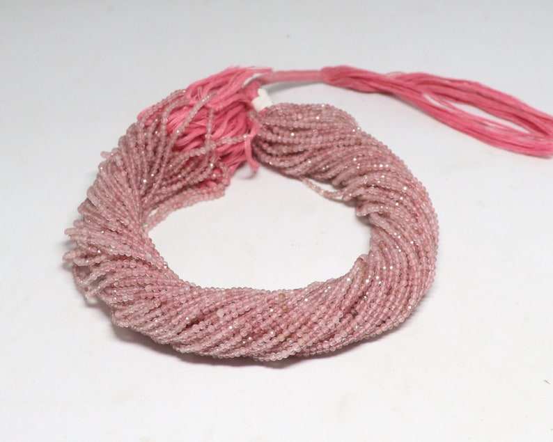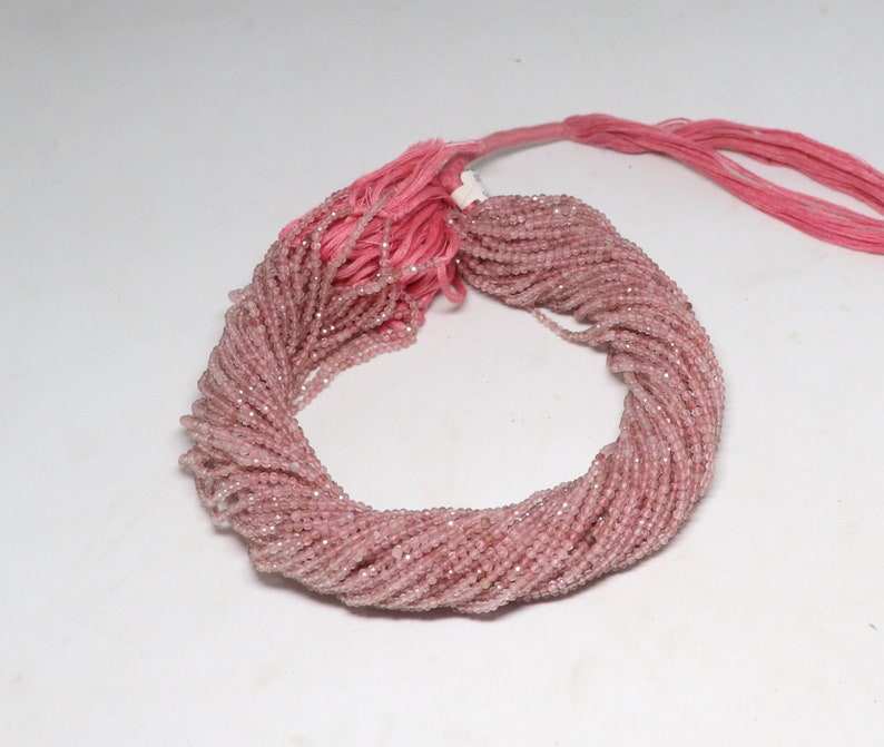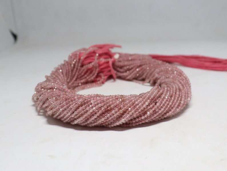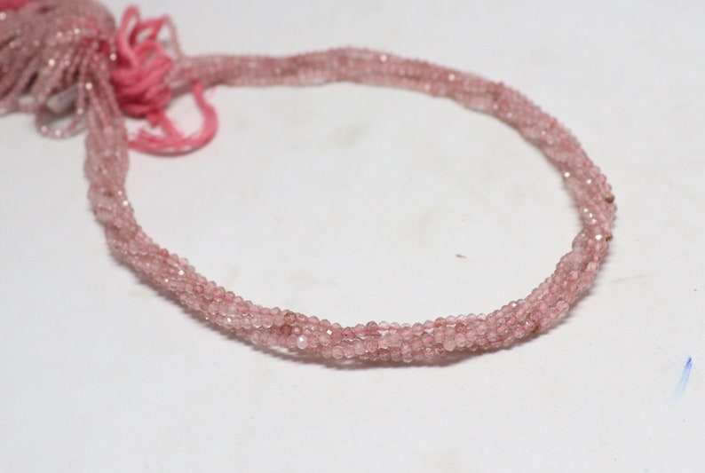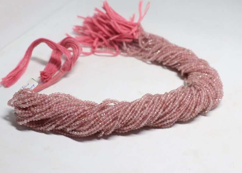 ลูกปัดควอตซ์สตรอเบอร์รี่ธรรมชาติทรงรอนเดลเหลี่ยมเล็ก ขนาด 2-2.5 มม. ลูกปัดพลอยควอตซ์สตรอเบอร์รี่ 13 นิ้ว สำหรับทำเครื่องประดับ