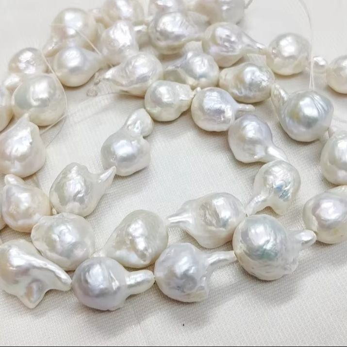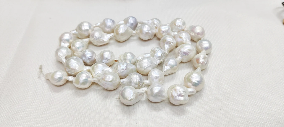 ไข่มุกบาร็อคสีขาวธรรมชาติทรงหยดน้ำ ขนาด 13*16 - 15*18 มม. ความยาว 14 นิ้ว 1 เส้น 100% อัญมณีธรรมชาติ สำหรับทำเครื่องประดับ