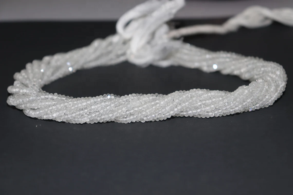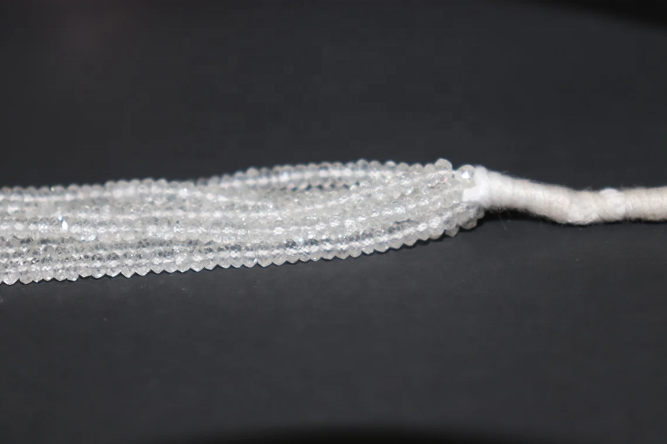 ลูกปัดกลมเหลี่ยมเพชรพลอยบุษราคัมสีขาว