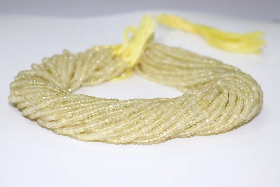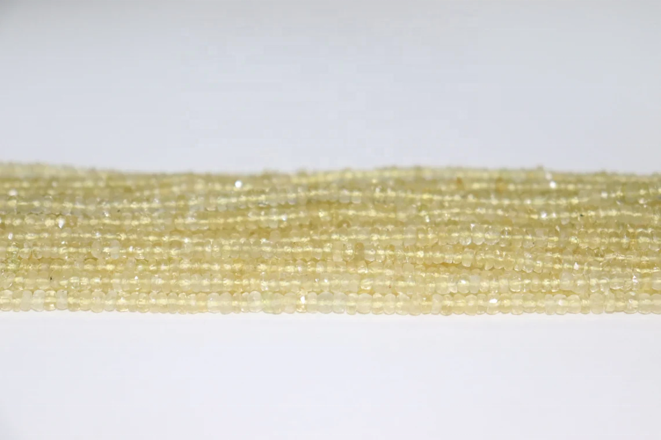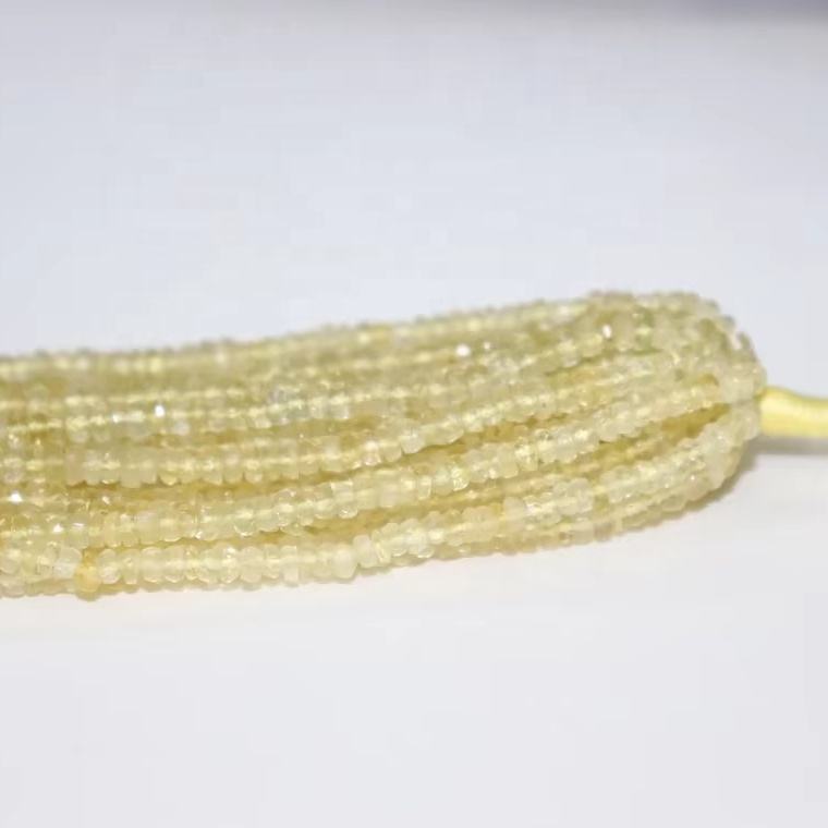 ลูกปัดอะความารีนสีเหลืองธรรมชาติทรงรอนเดลเหลี่ยมเพชรพลอย ขนาด 3.5 มม. ยาว 14 นิ้ว พลอยธรรมชาติหายากมากสำหรับทำเครื่องประดับ