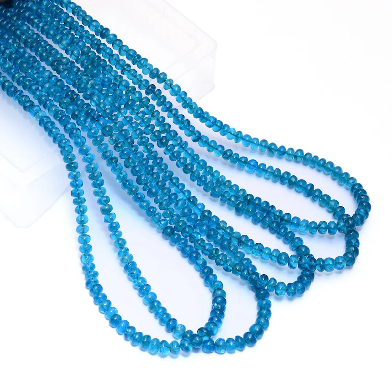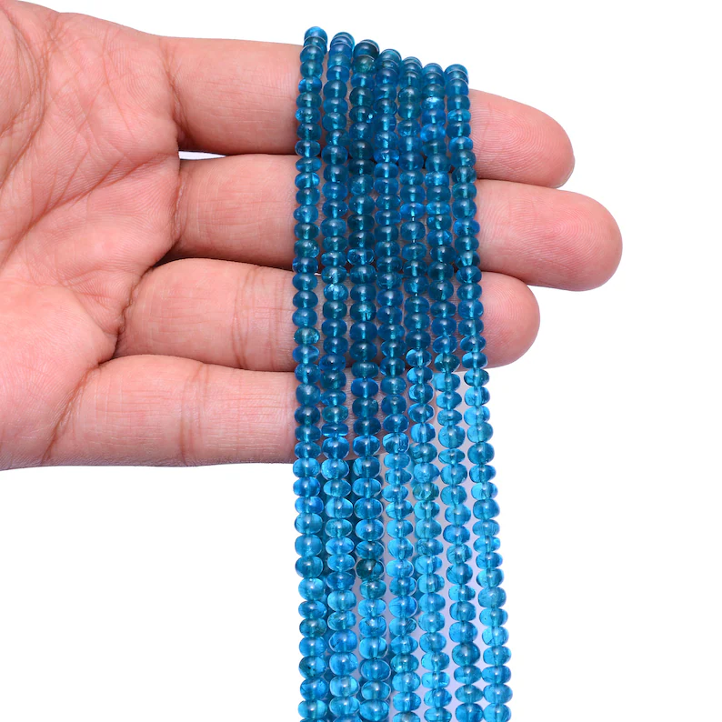 ลูกปัดรอนเดลขนาด4-5มม. AAA Neon apatite ลูกปัดขนาด16นิ้ว | ลูกปัดอัญมณีกึ่งมีค่า apatite สีน้ำเงินธรรมชาติสำหรับเครื่องประดับ