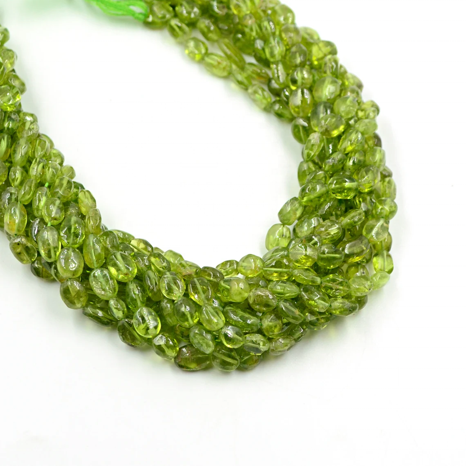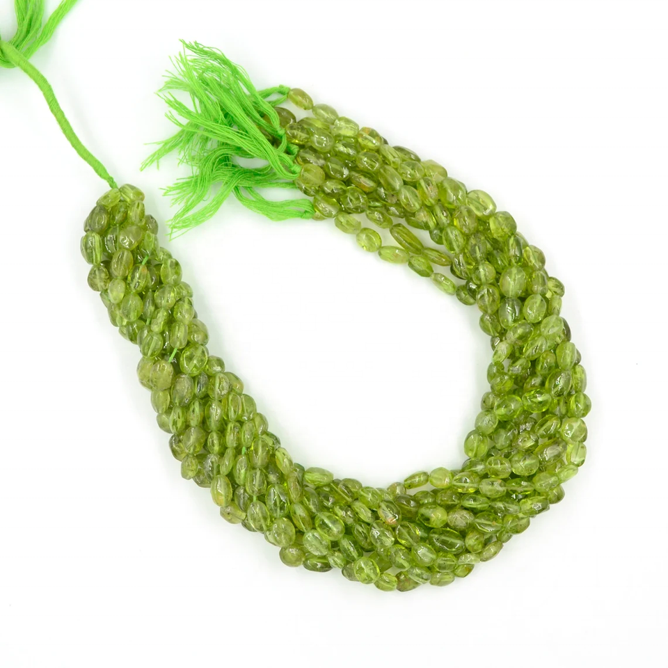 AAA Peridot พลอยลูกปัดรูปไข่เรียบ4*6-5*7มม. 13นิ้วขายส่งสำหรับการทำเครื่องประดับ