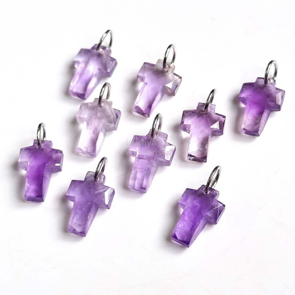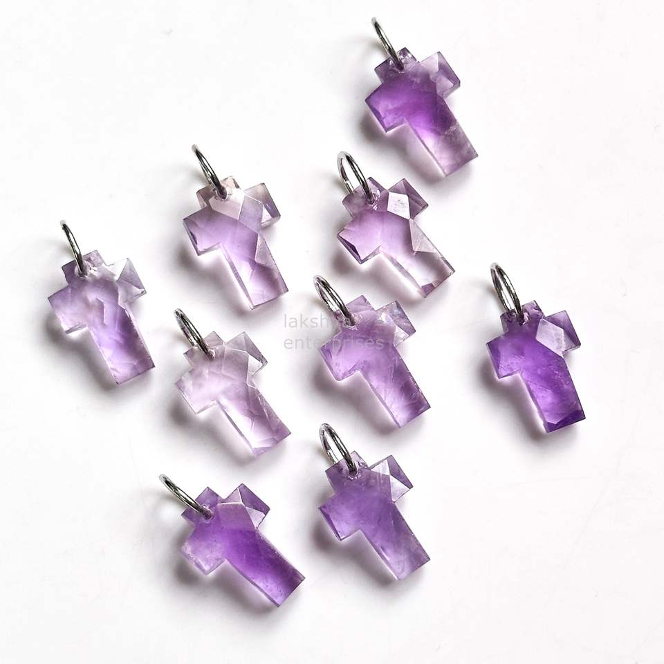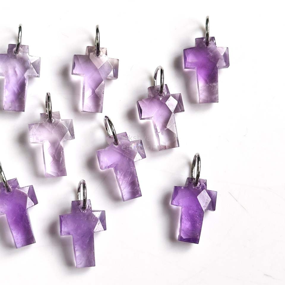จี้ไม้กางเขนอเมทิสต์สีชมพูธรรมชาติ
