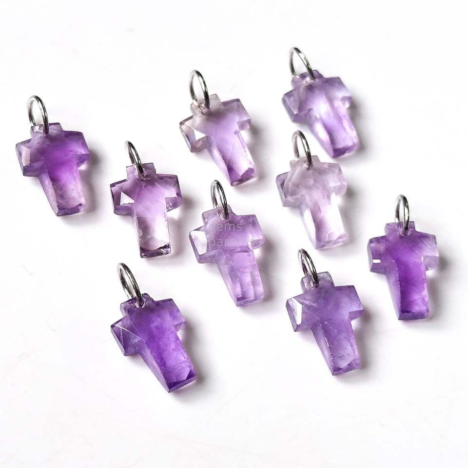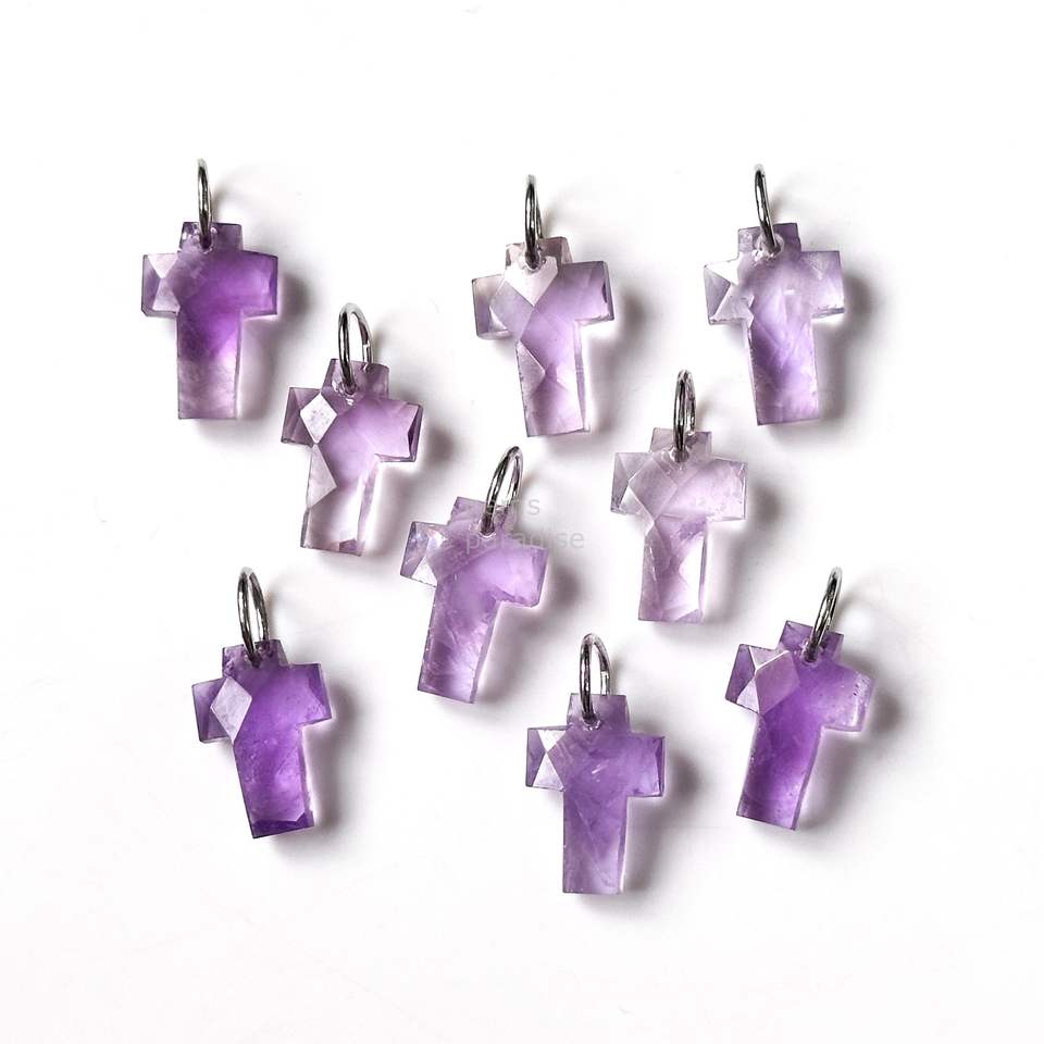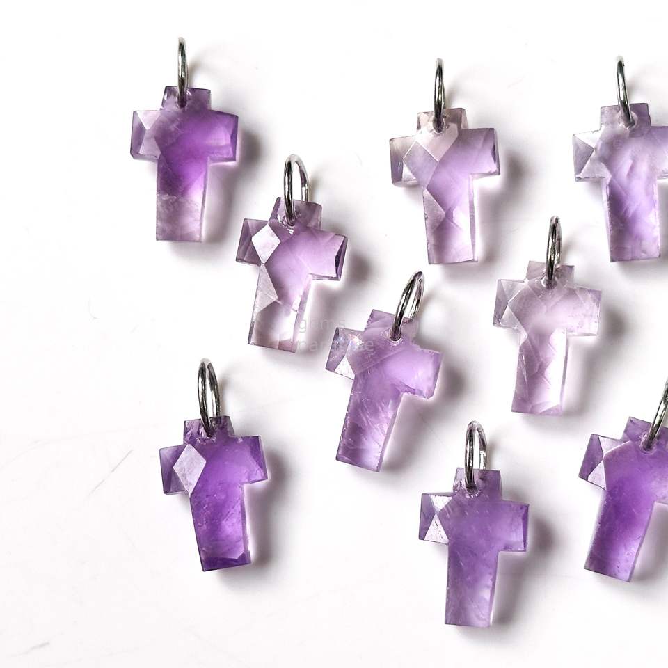 ชื่ออัญมณี:จี้ห้อยคอ อเมทิสต์สีชมพูธรรมชาติ รูปไม้กางเขนศักดิ์สิทธิ์