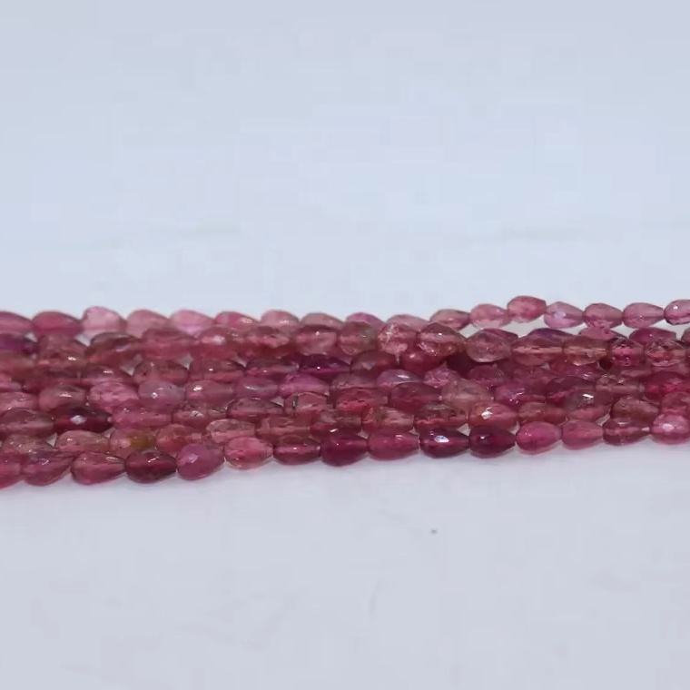 ลูกปัดทัวร์มาลีนสีชมพูทรงหยดน้ำเจียระไนแบบตรง ขนาด 5x7 มม. สำหรับทำเครื่องประดับ