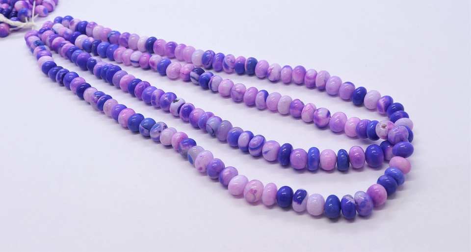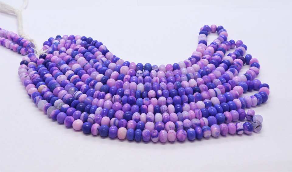 ชื่อผลิตภัณฑ์:ลูกปัดโอปอลทรงรอนเดลล์เรียบ สีม่วงชมพู ลายจุด AAA