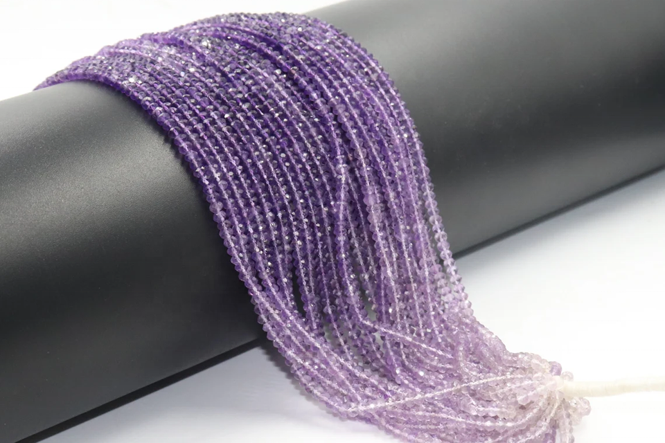ลูกปัดอะมีทิสต์ธรรมชาติคุณภาพ AAA ทรงรอนเดลเหลี่ยมเพชรพลอย ขนาด 4 มม. ยาว 16 นิ้ว สีไล่เฉดแบบแอฟริกัน น้ำหนักปรับแต่งได้สำหรับทำเครื่องประดับ