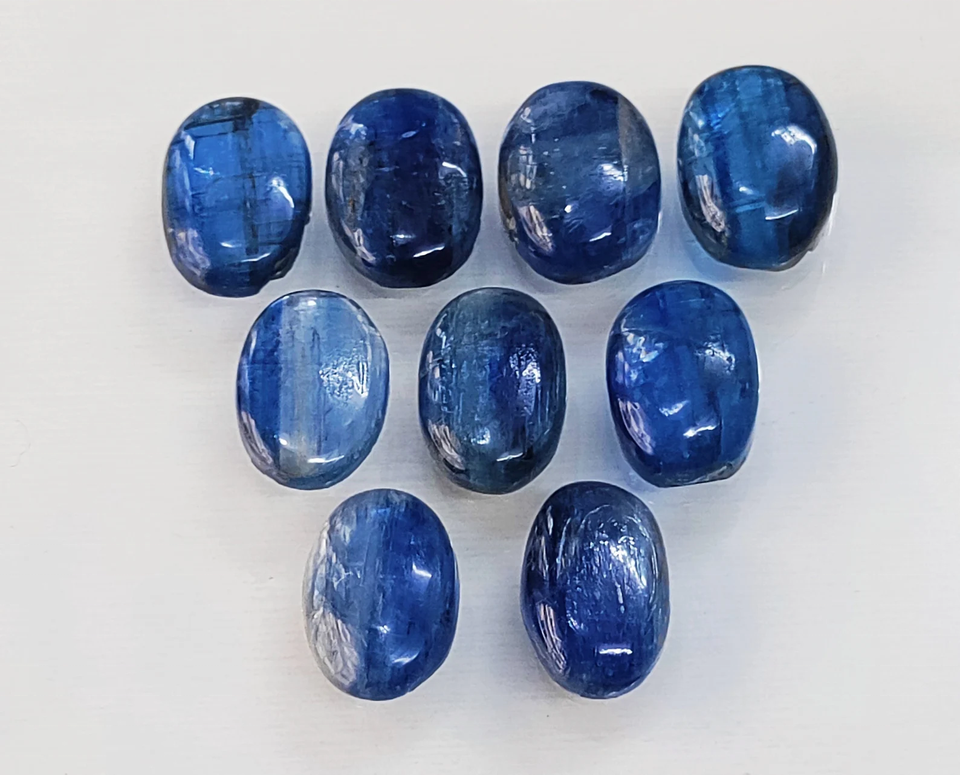 พลอยไคยาไนต์สีน้ำเงินคุณภาพ AAA รูปทรงรีเจียระไนแบบคาโบชอง ขนาด 14*10 มม. เจาะรูตรง สำหรับทำเครื่องประดับ ราคาขายส่ง