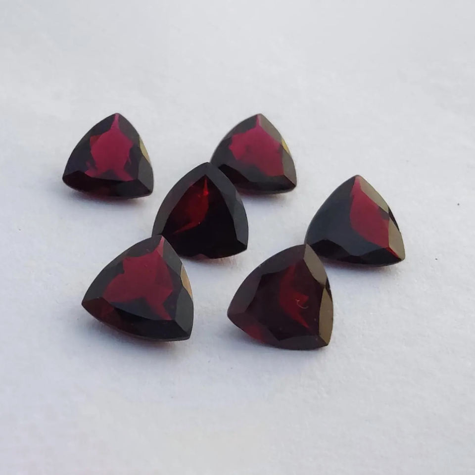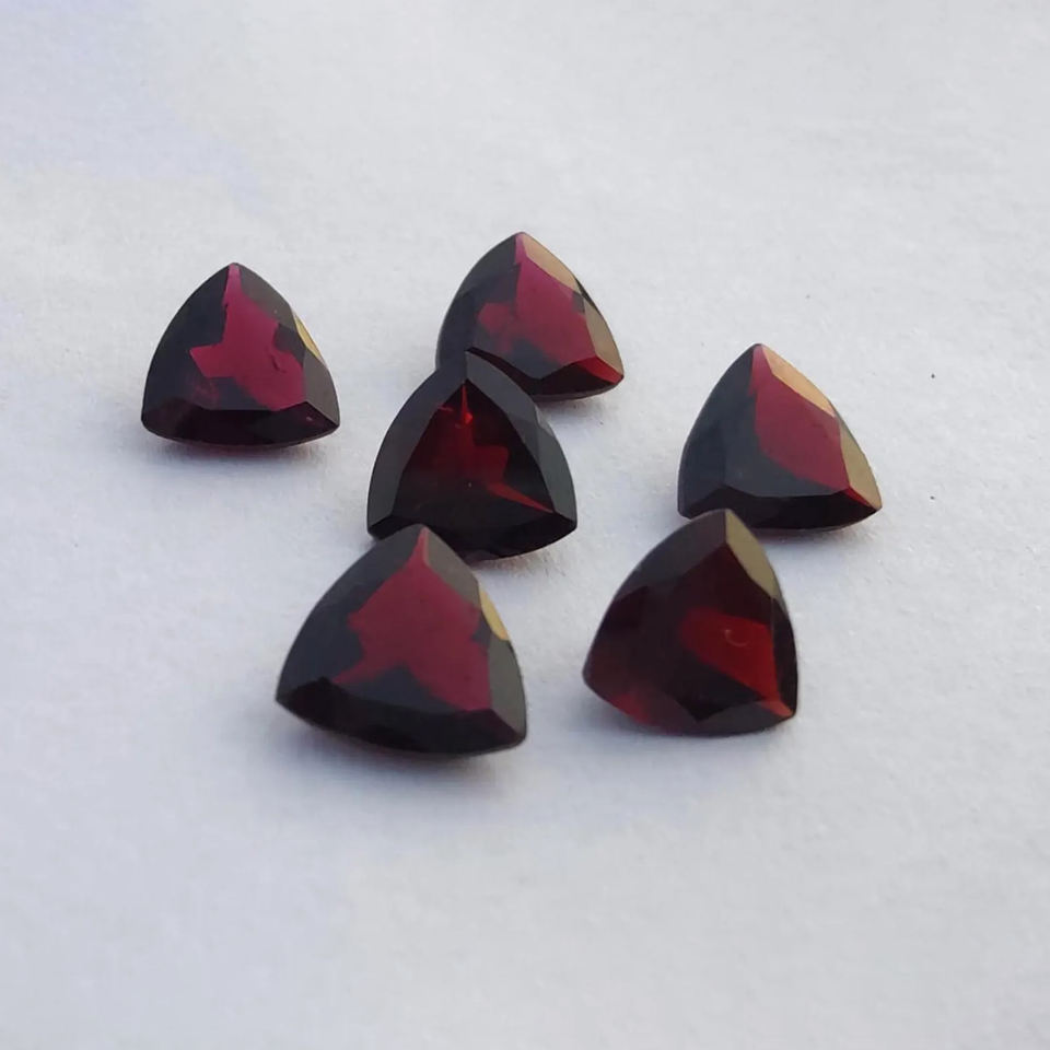 พลอยโกเมนคุณภาพระดับ AAA+ ทรงทริลเลียนเจียระไน รูปทรงสามเหลี่ยม ขนาดปรับเทียบแล้ว สำหรับทำเครื่องประดับ