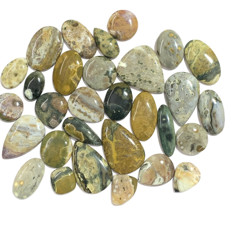 หินจัสเปอร์ Cabochon IGI แร่ควอตซ์สีเขียวน้ำเงินเกรดสูงเกรด AAA คุณภาพสูงขนาด9มม.-14มม.