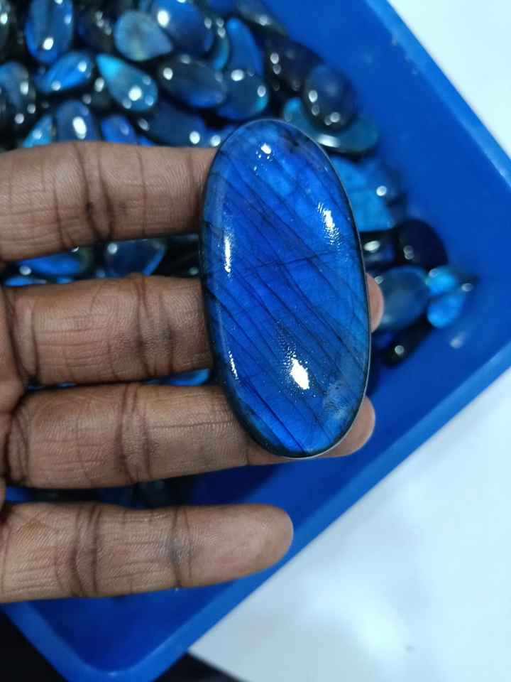 พลอยลาบราโดไรต์คุณภาพ AAA ราคาสุดคุ้ม ลาบราโดไรต์สีน้ำเงินธรรมชาติทรงหลังเบี้ย ขนาดอิสระสำหรับทำเครื่องประดับ ไฟสีน้ำเงิน